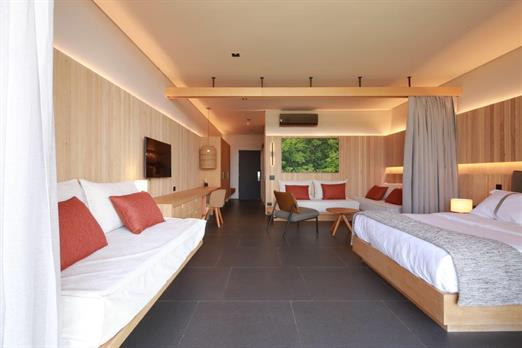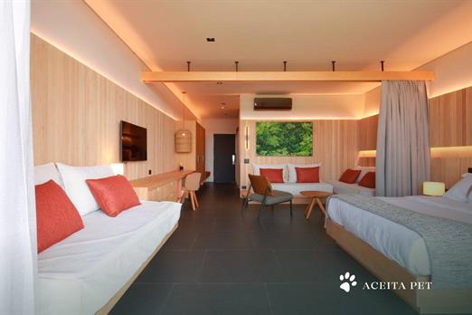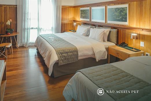 Localizada próximo a entrada do Restaurante da Sede, nossa suíte possui dois quartos separados por uma porta interna, comportando até 4 pess...