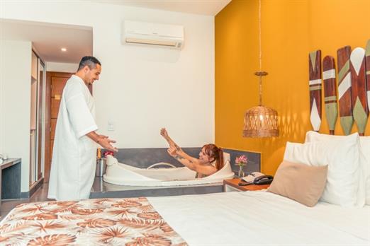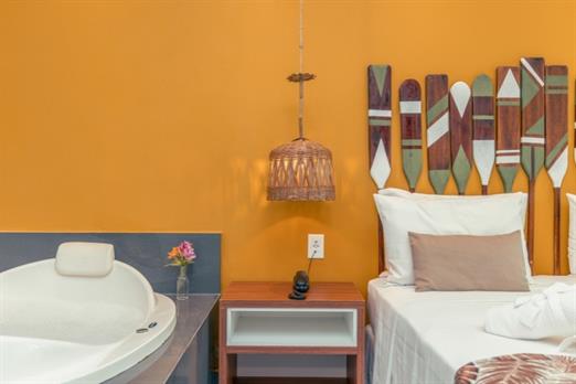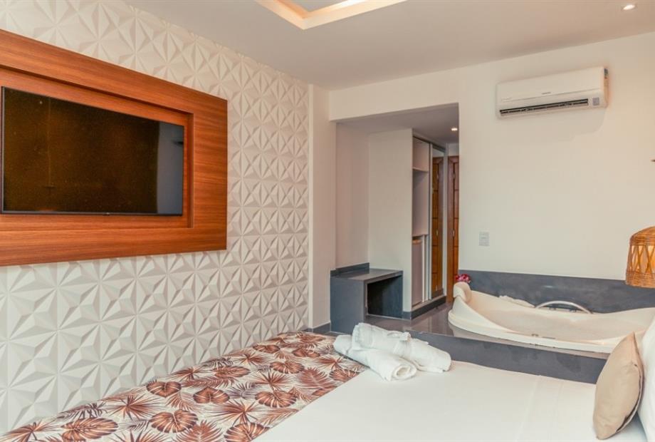 Experimente conforto e relaxamento em nossa suíte no andar térreo, equipada com hidromassagem e 01 Cama Queen Size em um espaço de 24m². Apr...