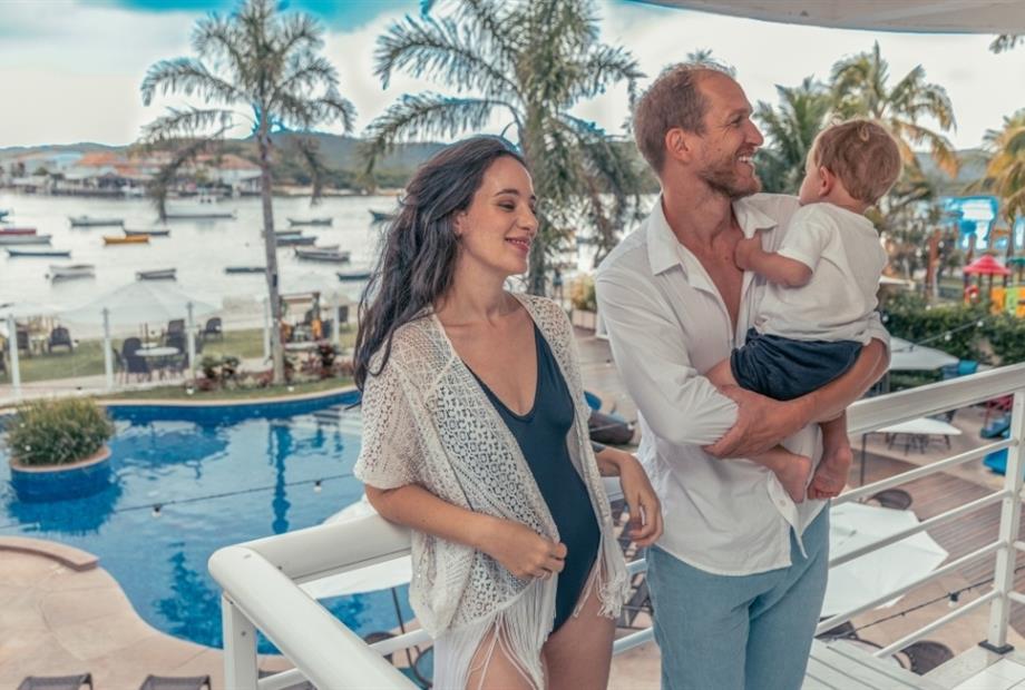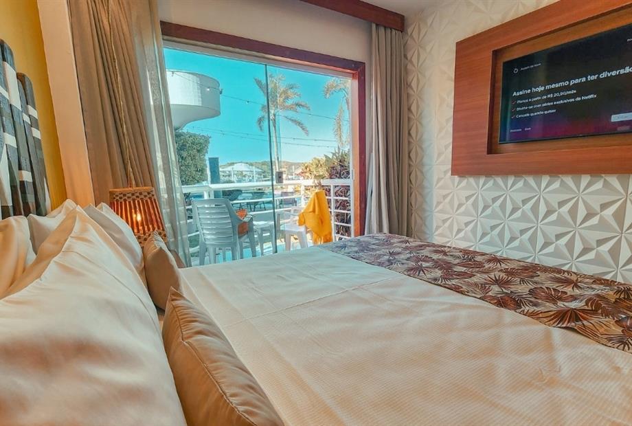 Descubra o luxo em nossa suíte de 02 ambientes (quarto/sala) localizada no andar superior, 02 sacadas com vista para a piscina e o Canal Ita...