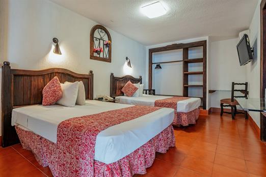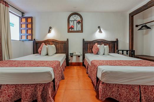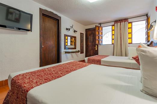Habitación estilo colonial con 2 camas matrimoniales que incluye: ▪ Toallas ▪ Televisión con cable ▪ Aire acondicionado ▪ Secadora ▪ Artíc...
