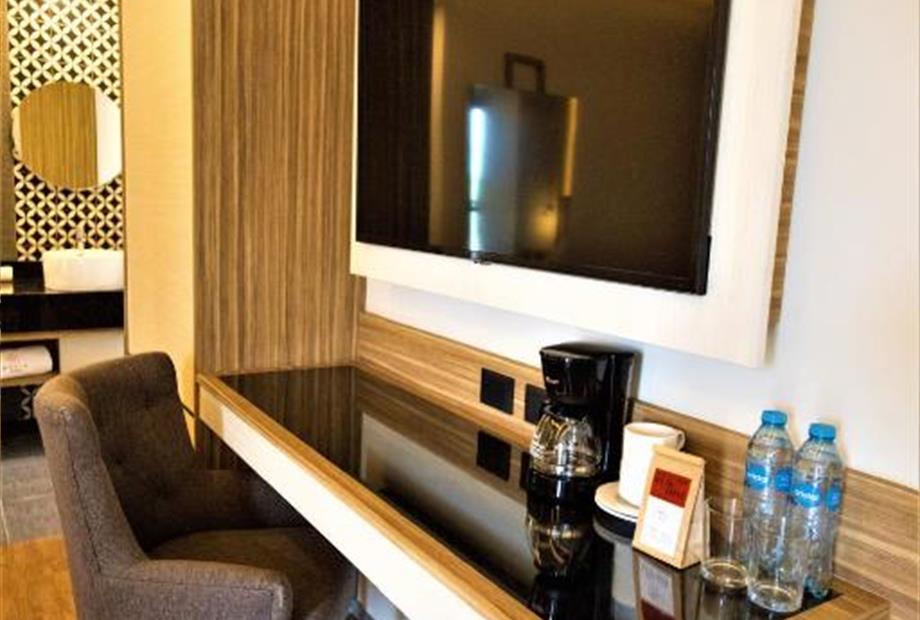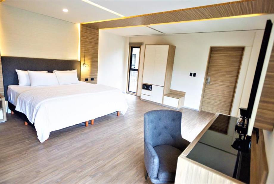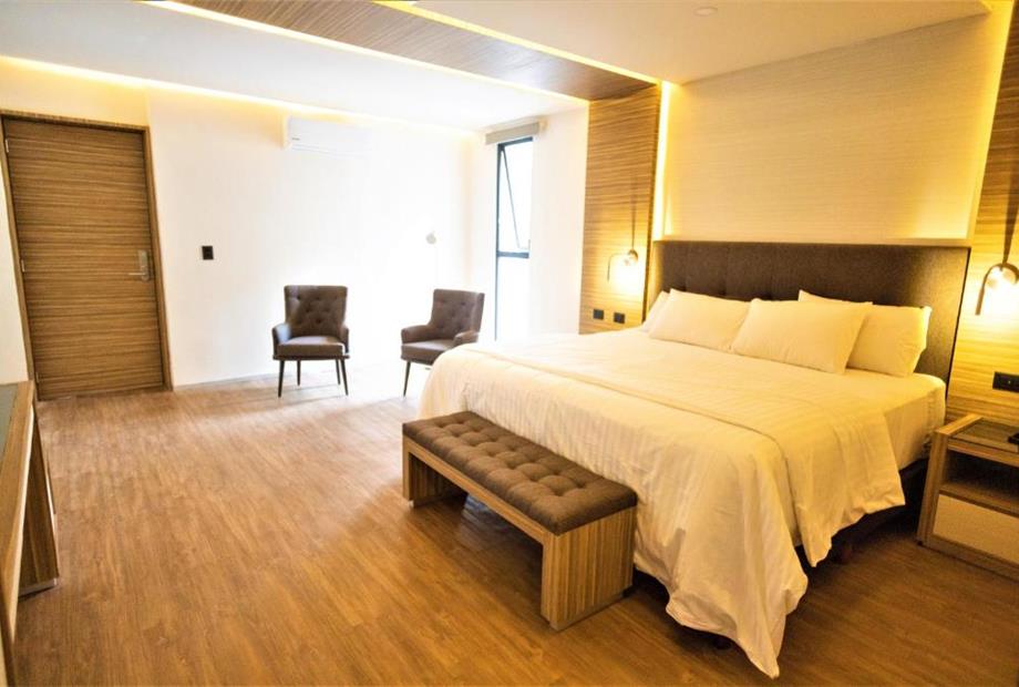 Habitación con 1 cama king. Cuenta con aire acondicionado, frigobar, caja fuerte, secadora de cabello, amenidades, agua caliente, armario, e...