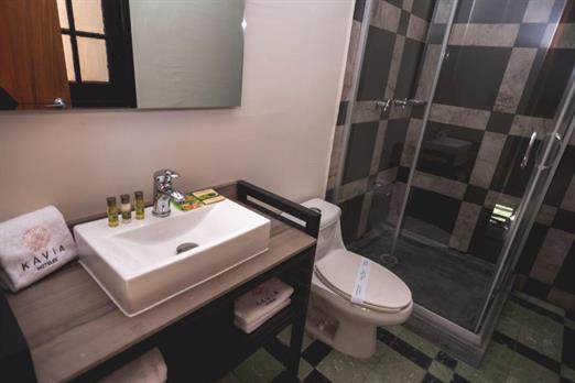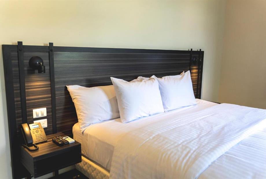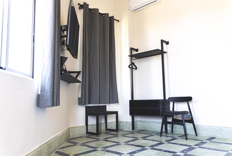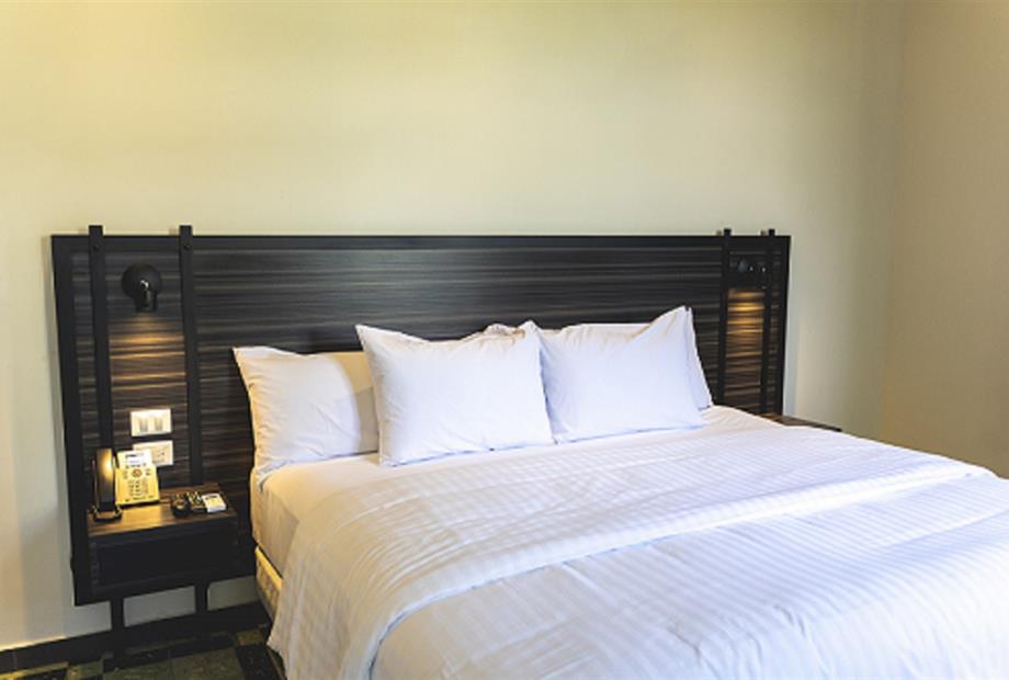 Habitación con una cama queen size, vista interior, aire acondicionado, Tv 40 pulgadas con canales vía satélite, escritorio, teléfono, baño...