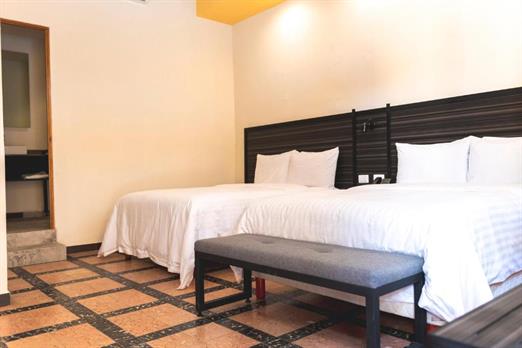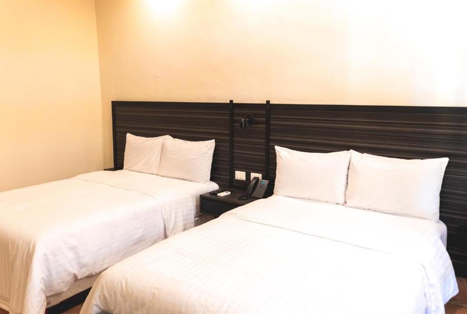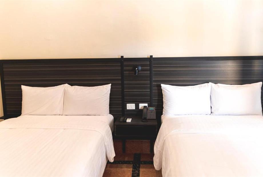 Habitación con dos camas matrimoniales, vista interior, aire acondicionado, Tv 40 pulgadas con canales vía satélite, escritorio, teléfono, b...