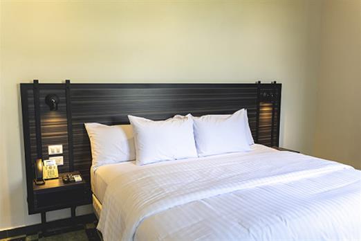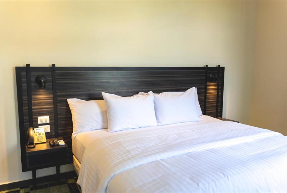 Habitación con una cama king size, vista interior, aire acondicionado, Tv 40 pulgadas con canales vía satélite, escritorio, teléfono, baño p...