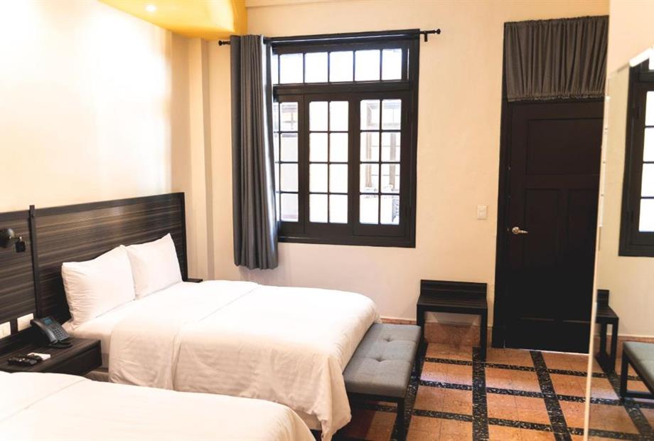Habitación amplia con una cama king size, vista exterior al Parque Hidalgo, aire acondicionado, Tv 40 pulgadas con canales vía satélite, esc...