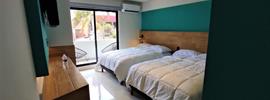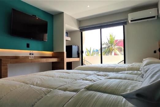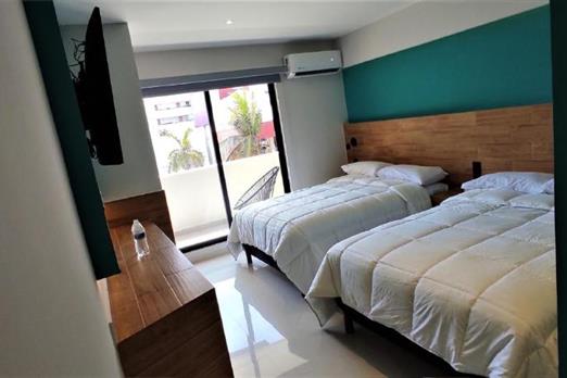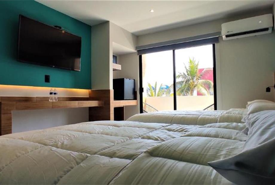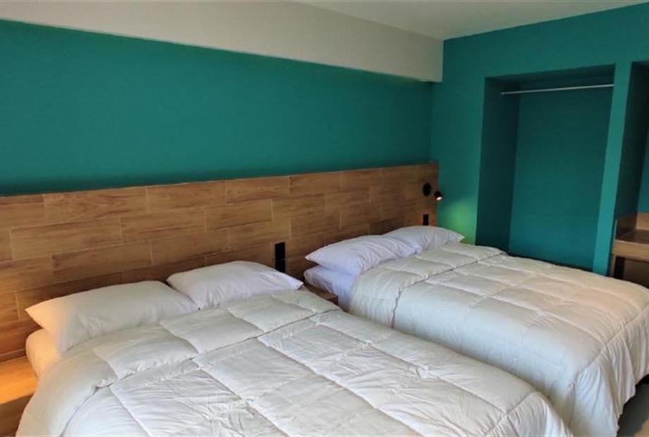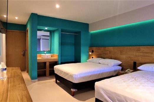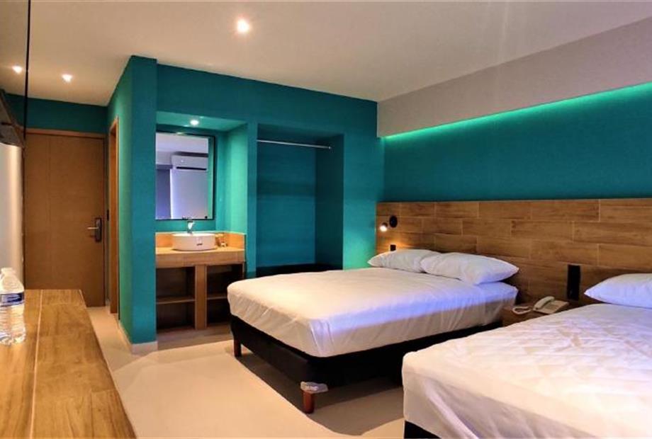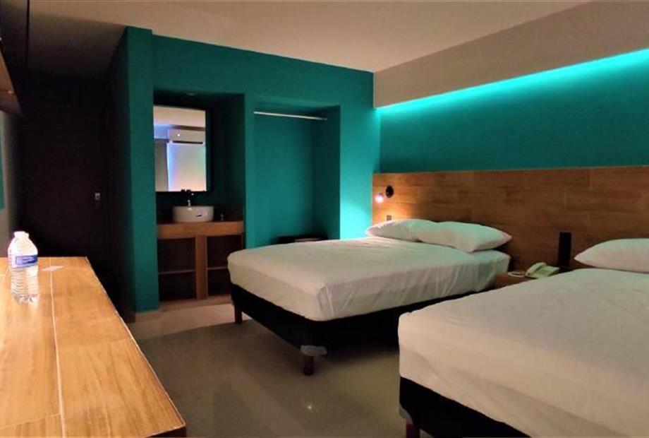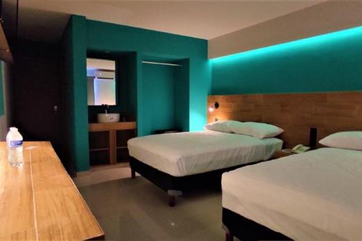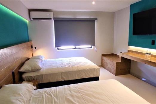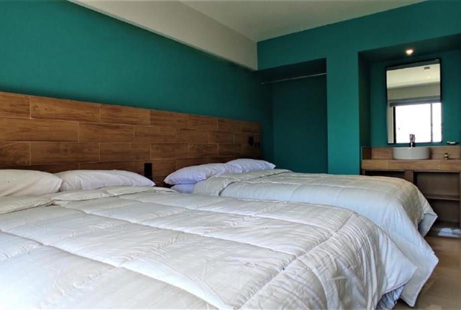 Habitación con 2 camas matrimoniales. Cuenta con aire acondicionado, amenidades, escritorio, armario, Smart TV, Caja Fuerte, WiFi gratuito.