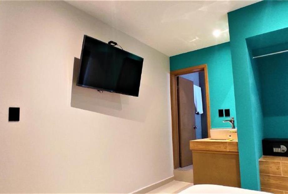 Habitación con 1 cama matrimonial. Cuenta aire acondicionado, escritorio, armario, Smart TV, Caja fuerte, WiFi gratuito, baño privado y amen...