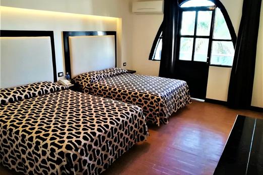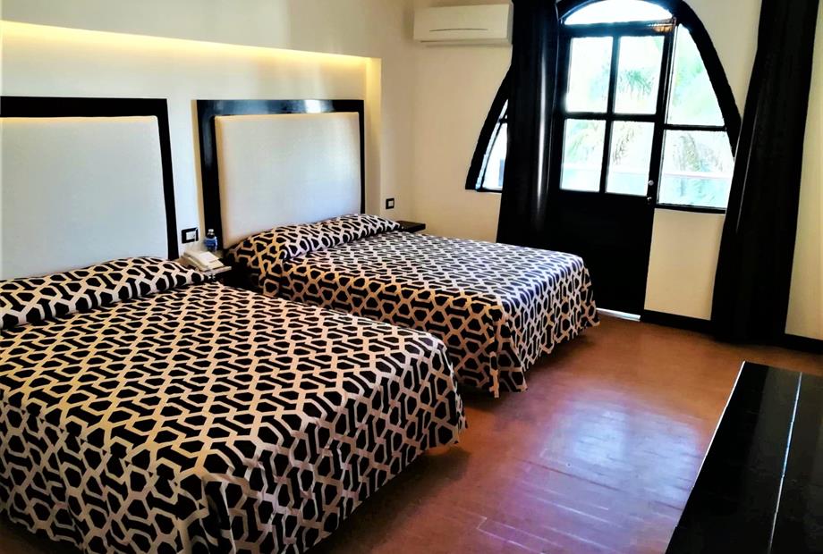 Habitación con 2 camas dobles. Cuenta con TV de pantalla plana con canales por cable, aire acondicionado, WIFI gratis, balcón, teléfono, pla...