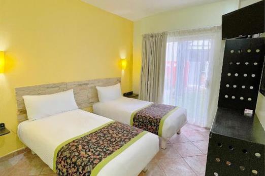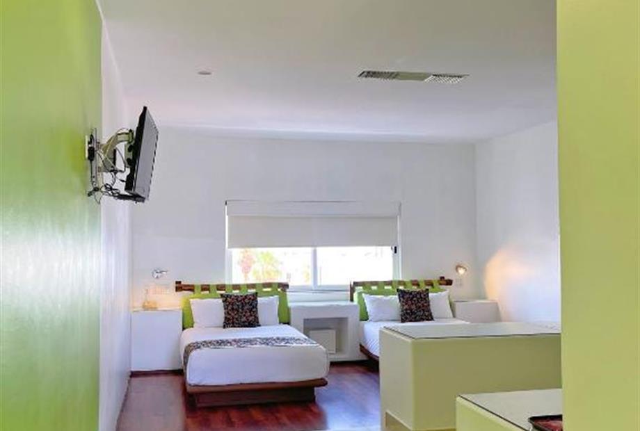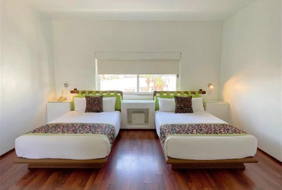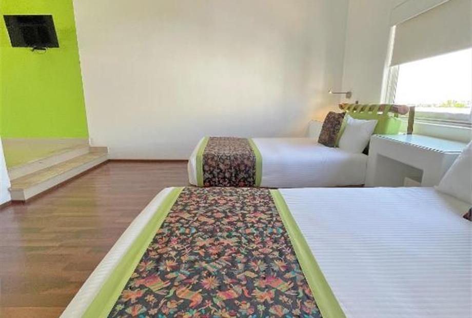 Habitación con dos camas matrimoniales, sala, baño privado, TV por cable, WiFi, aire acondicionado, secador de cabello, frigobar, cafetera.