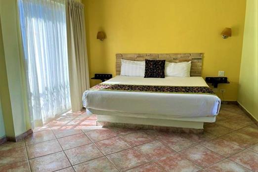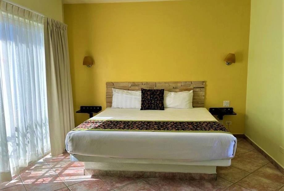 Habitacion con una cama king size, baño privado, TV por cable, WiFi, aire acondicionado, secador de cabello