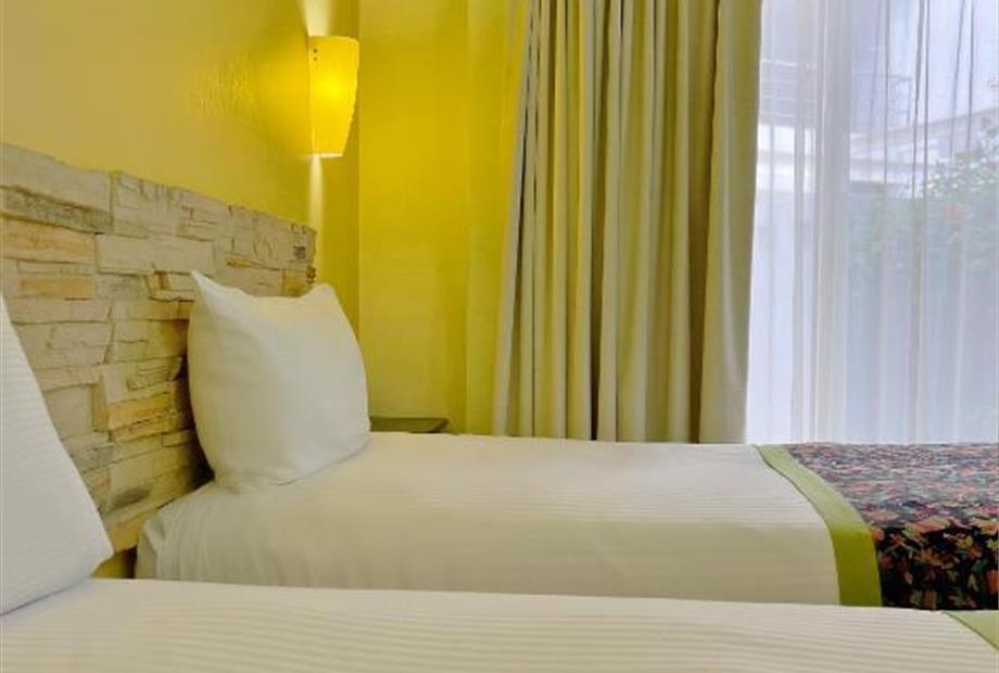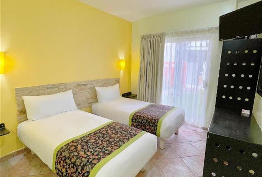 Habiatcion con dos camas individuales baño privado, TV por cable, WiFi, Aire acondicionado, secadora de cabello