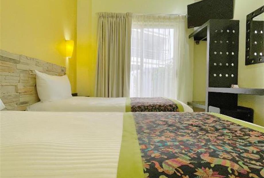 Habitación con dos camas matrimoniales, baño privado, TV por cable, WiFi, aire acondicionado, secadora de cabello.