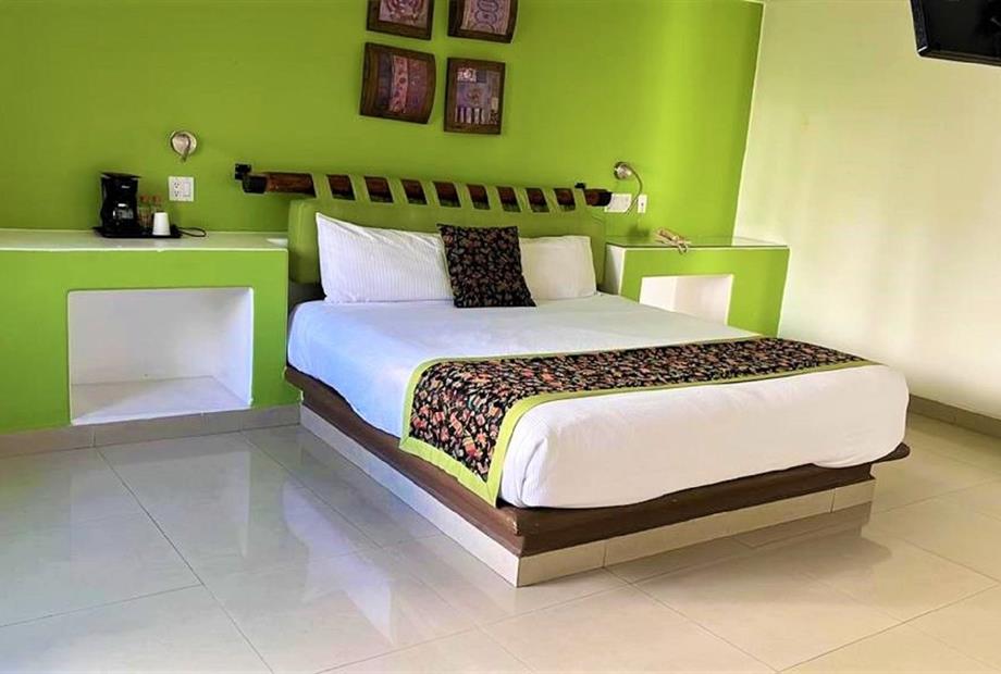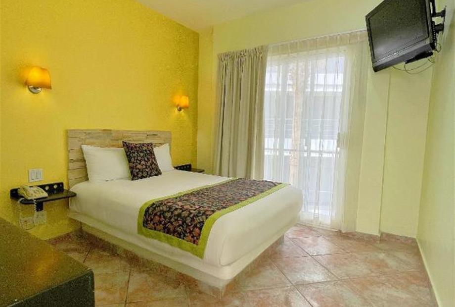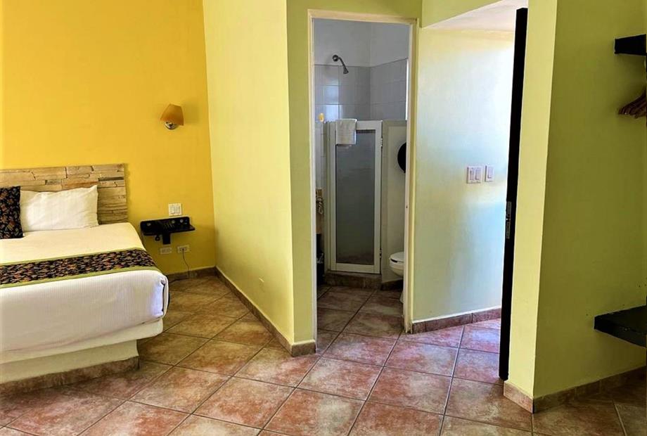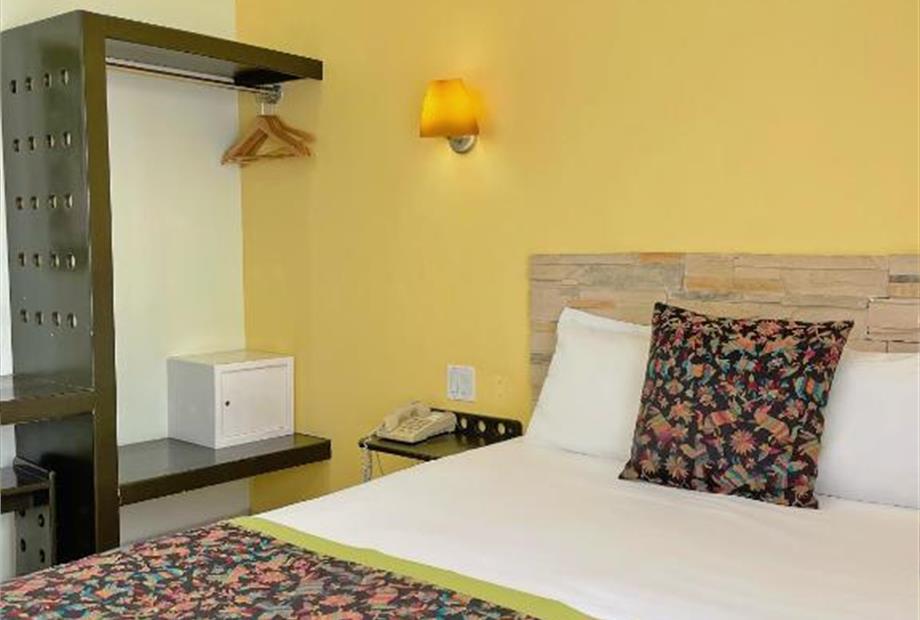 Habitación sencilla con 1 cama queen, baño privado, TV por cable, WiFi, aire acondicionado, secador de cabello.