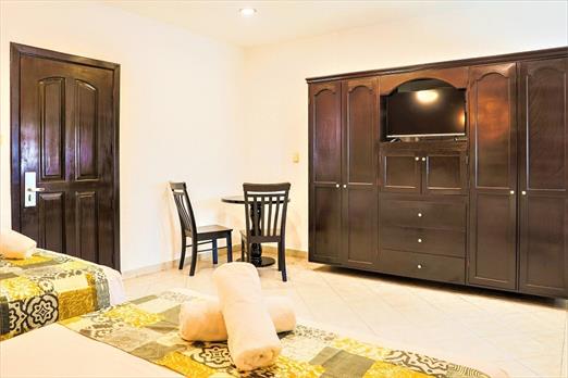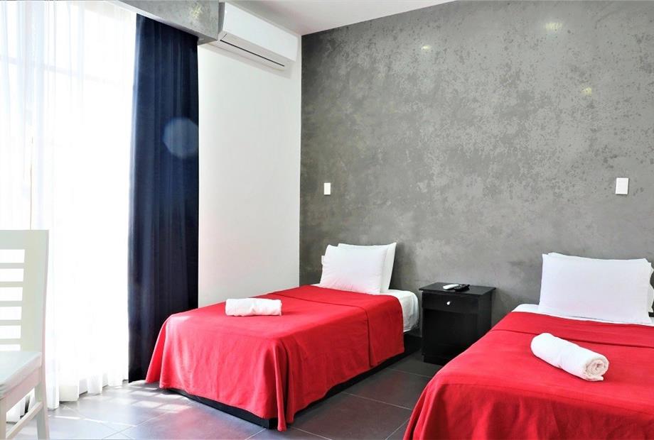 Habitación con 2 camas individuales. Cuenta con aire acondicionado, WIFI gratis, TV pantalla plana con canales vía satélite, ventilador, tel...