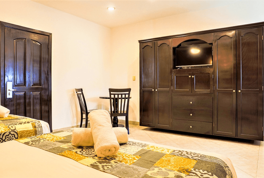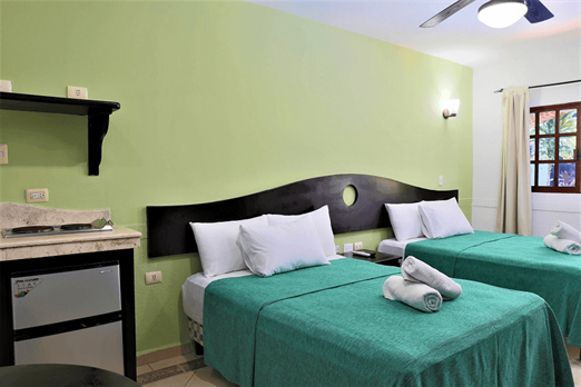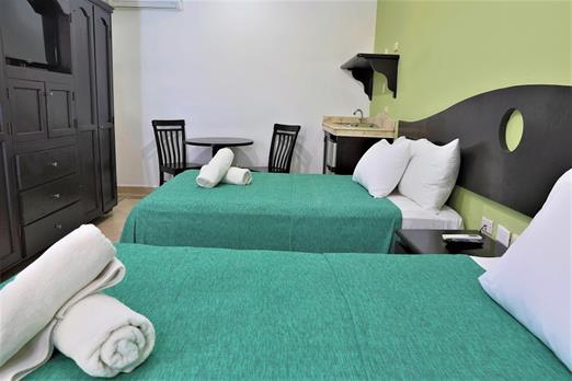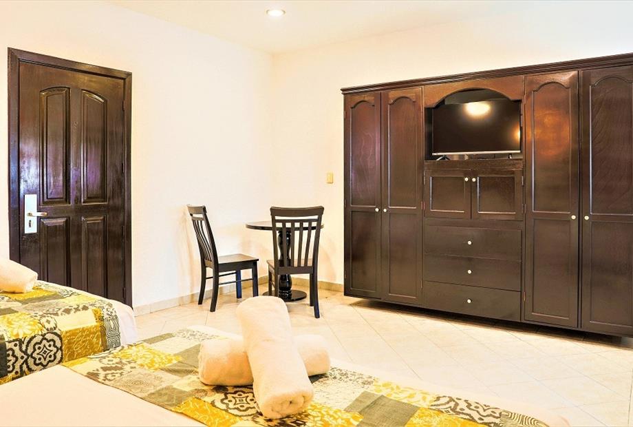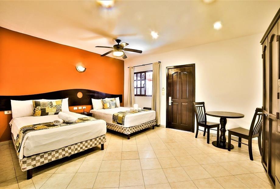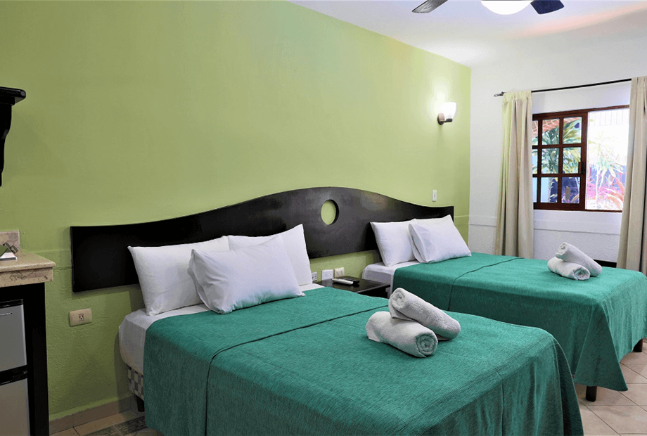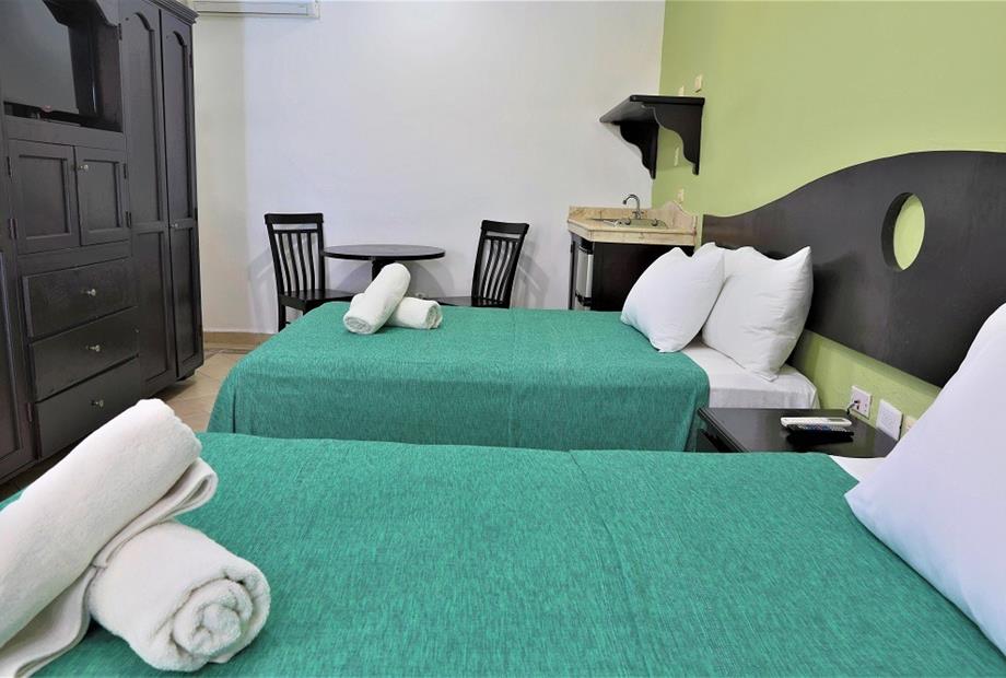 Habitación con 2 camas dobles. Cuenta con aire acondicionado, WIFI gratis, TV pantalla plana con canales vía satélite, ventilador, teléfono,...