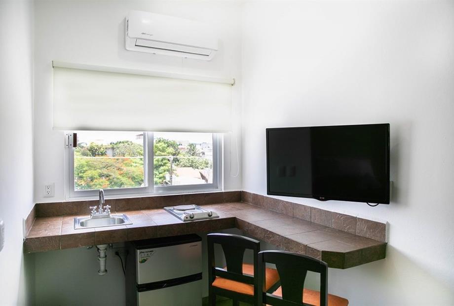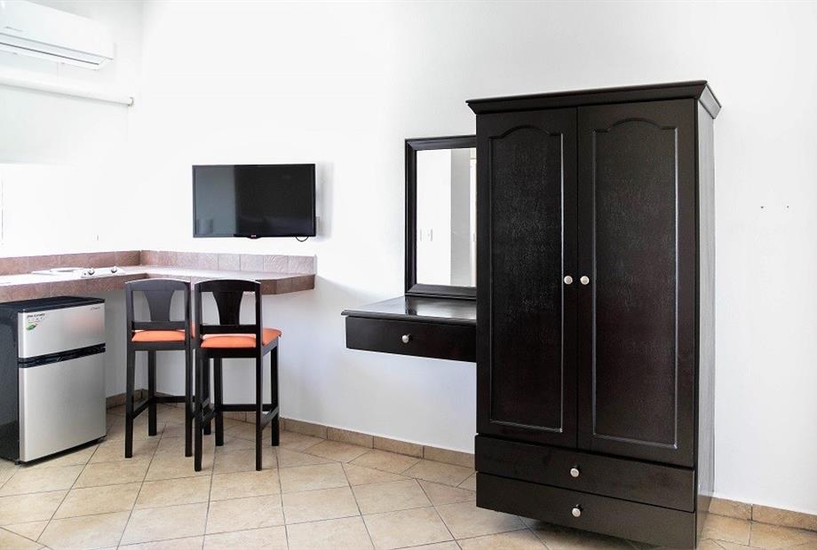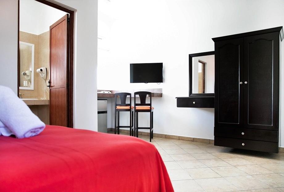 Habitación con 1 cama king. Cuenta con aire acondicionado, WIFI gratis, TV pantalla plana con canales vía satélite, ventilador, teléfono, es...