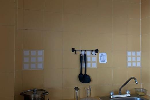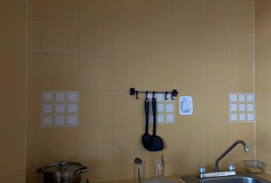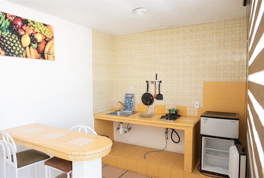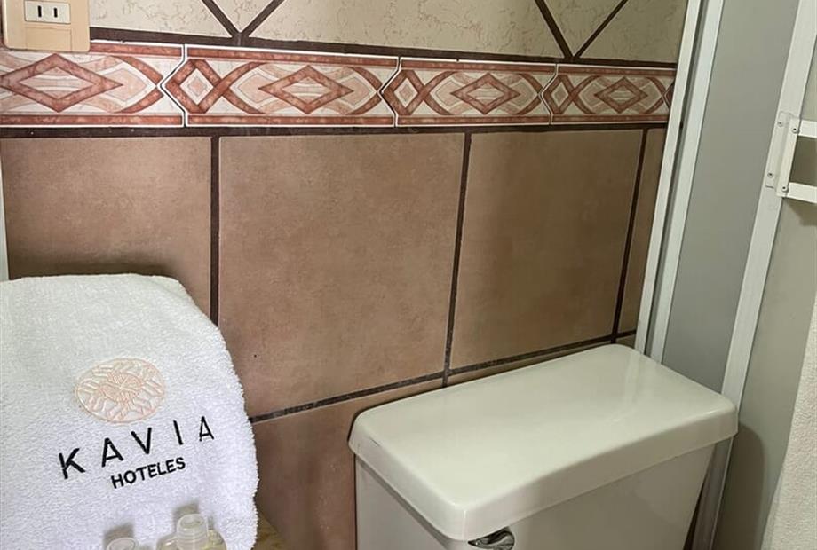 Habitación con 1 cama matrimonial y 1 cama individual, baño privado, agua caliente, aire acondicionado, tv por cable, cocineta y amenidades.