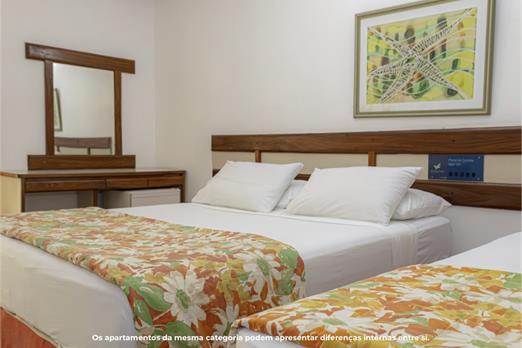 Este quarto conta com 1 Cama Casal Queen + 2 Camas de Solteiro - Máximo de 4 hóspedes, sendo máximo de 3 Adultos e máximo de 2 crianças cort...