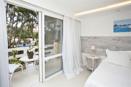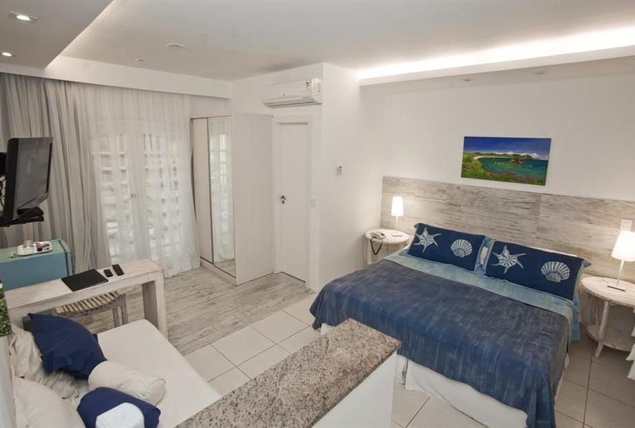 Equipados com cama box king, banheiro privativo com amenidades de banho TV lcd de 32″, TV a cabo, e varandas com vistas para jardim e pisci...