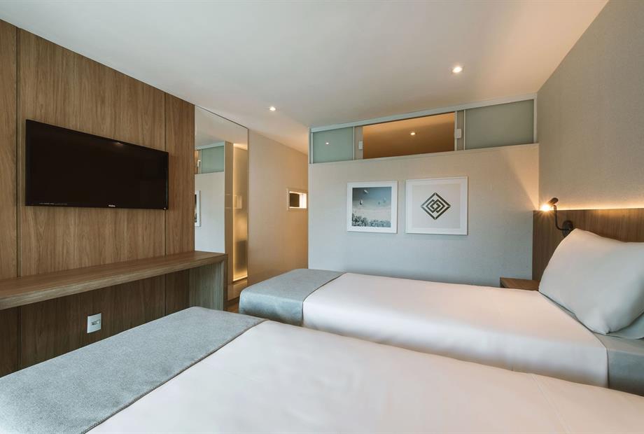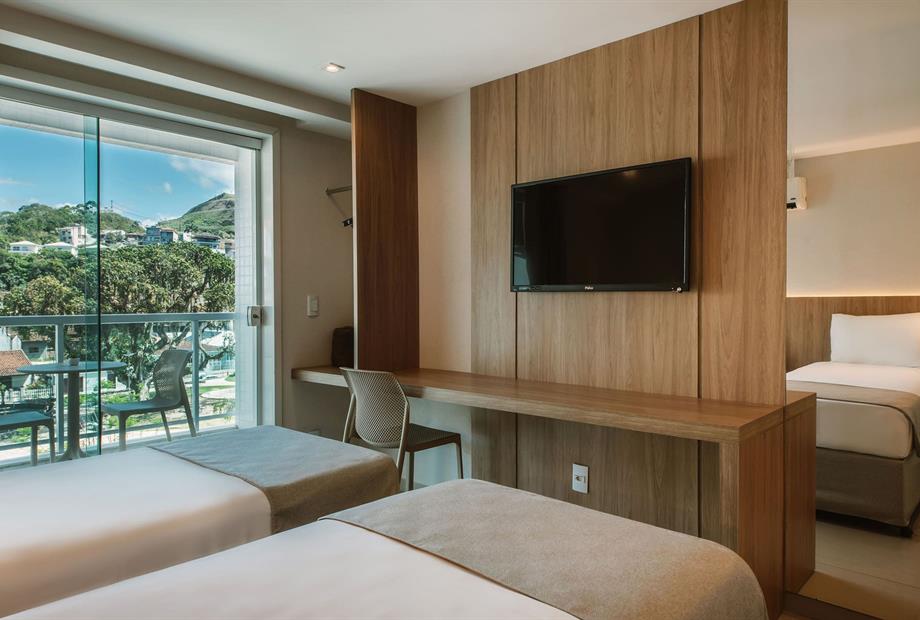 Live a unique experience in Angra dos Reis and discover its paradisiacal beach 6 km from the hotel. The Angra Beach Hotel offers the Ilha da Gipóia Day-Pass, an oasis of crystal clear waters in the sea of Angra for guests to spend the day, with service from a premium restaurant on site. The hotel has a complete structure with breakfast services, restaurant, free Wi-Fi, meeting room, as well as leisure options, such as a rooftop pool with panoramic views and a fitness room, making it ideal for tourists or companies. With a privileged location in the Parque das Palmeiras residential neighborhood, the Angra Beach Hotel guarantees tranquility and security, with several nearby locations, such as shopping malls, the city center, embarkation for tours, among others.