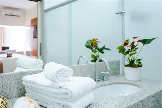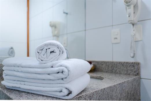 Apto com 02 camas box solteiro, ar-condicionado split, rack lateral com TV LCD com canais à cabo, frigobar, telefone (discagem direta), cofr...