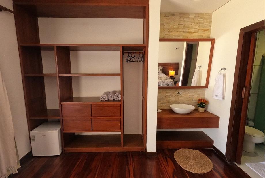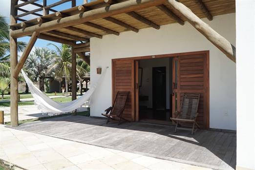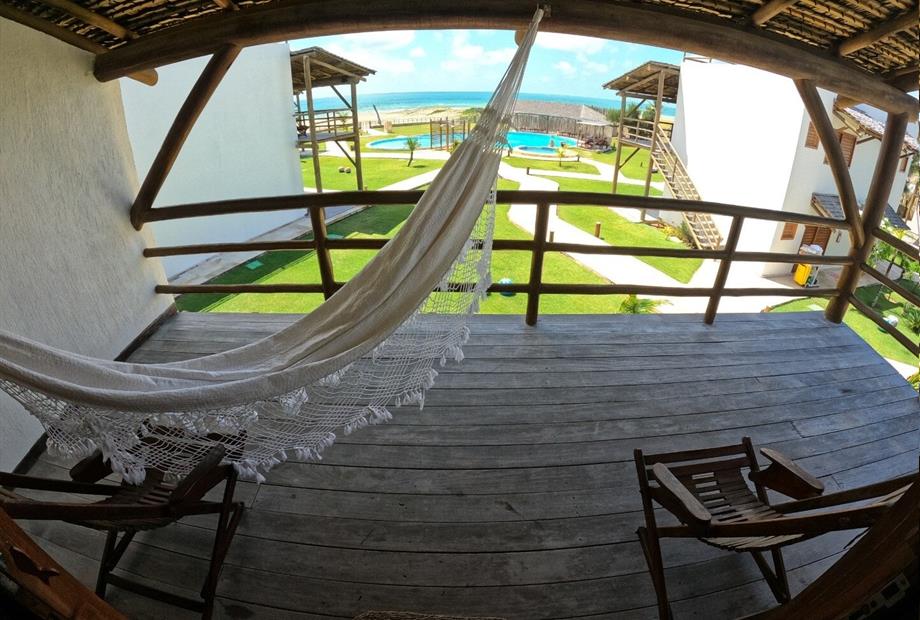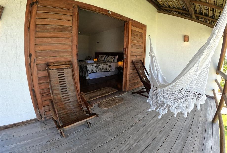 Com o mar logo à frente, essa suíte no térreo é perfeita para quem quer sair direto da rede para o kite. Acomoda até 3 pessoas, com 1 cama k...