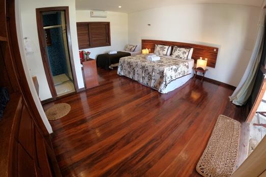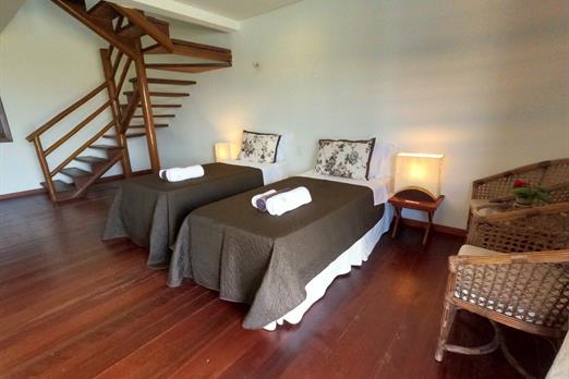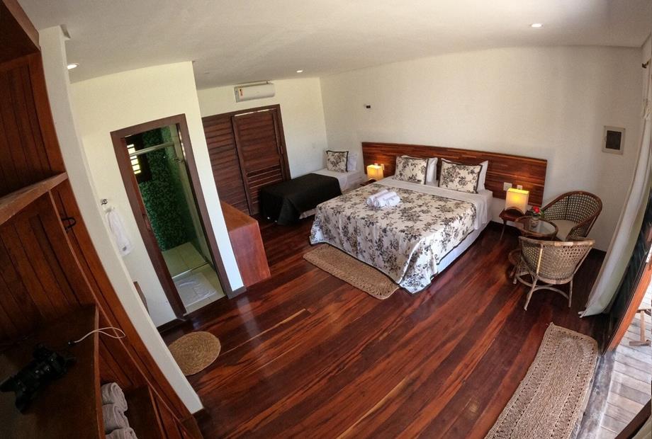 Uma vista de tirar o fôlego logo ao acordar. Com varanda de frente para o mar, essa suíte no piso superior acomoda até 3 pessoas. Frigobar,...