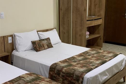 Quarto com 1 cama de casal e 1 de solteiro planejados para hospedar que desejam tranquilidade, comodidade e custo benefício adequado.