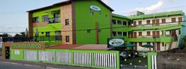 Este quarto duplo dispõe de entrada privativa, frigobar e ar-condicionado.