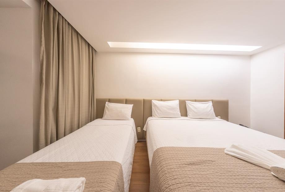 Este quarto Triplo oferece ar-condicionado, Tv , Frigobar, Banheiro com chuveiro elétrico