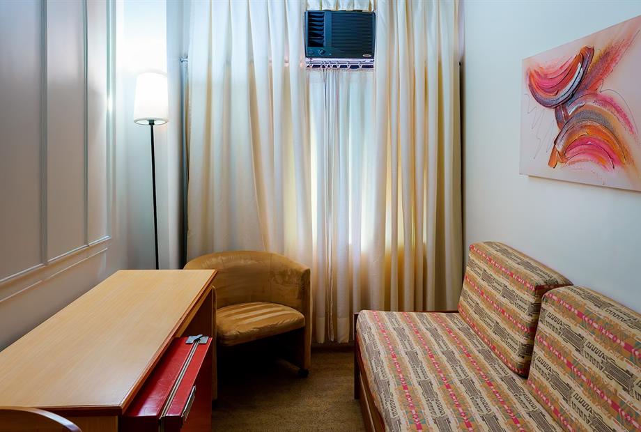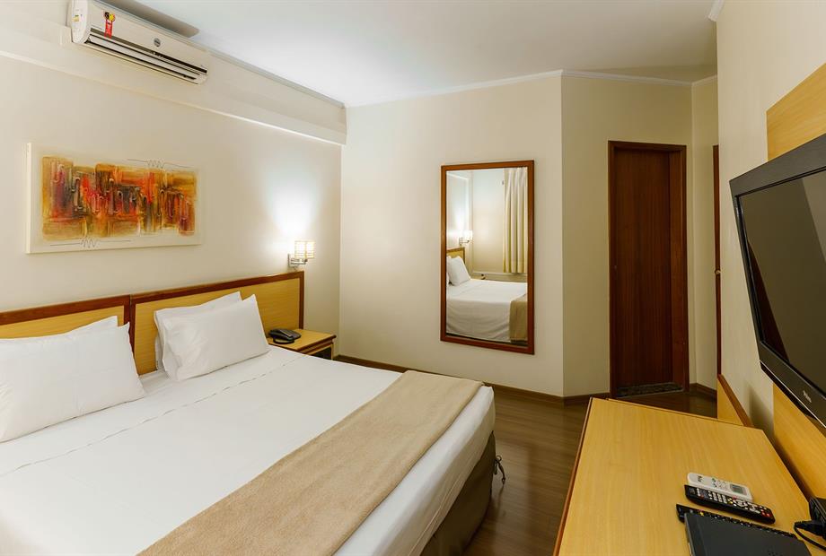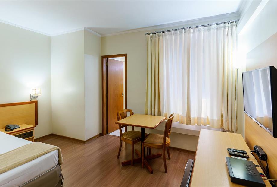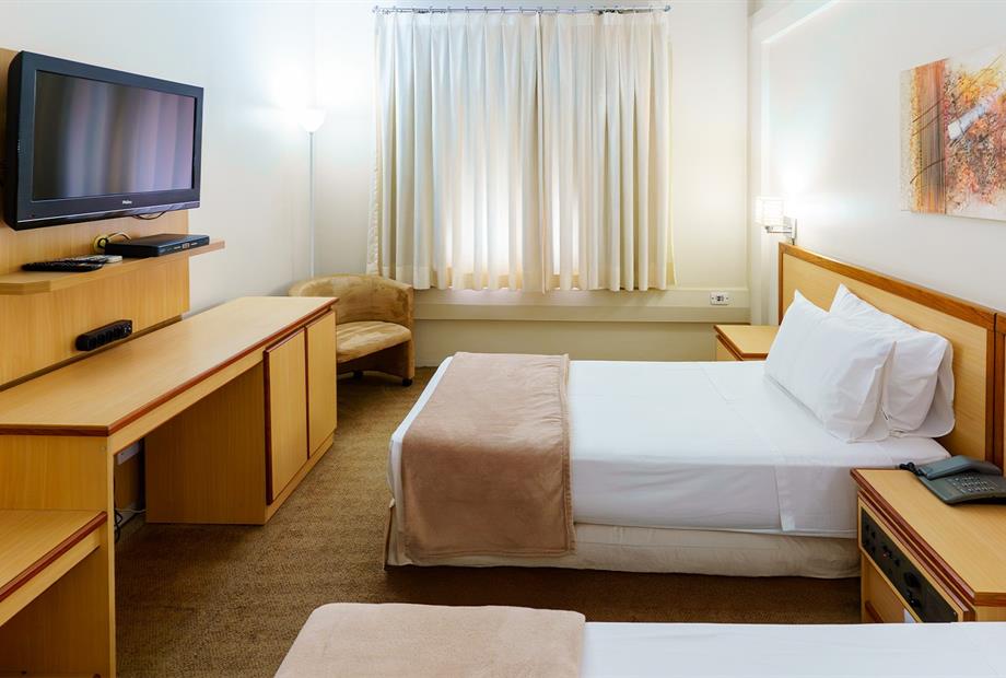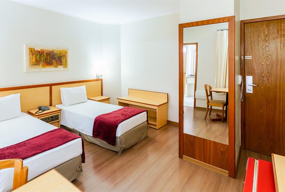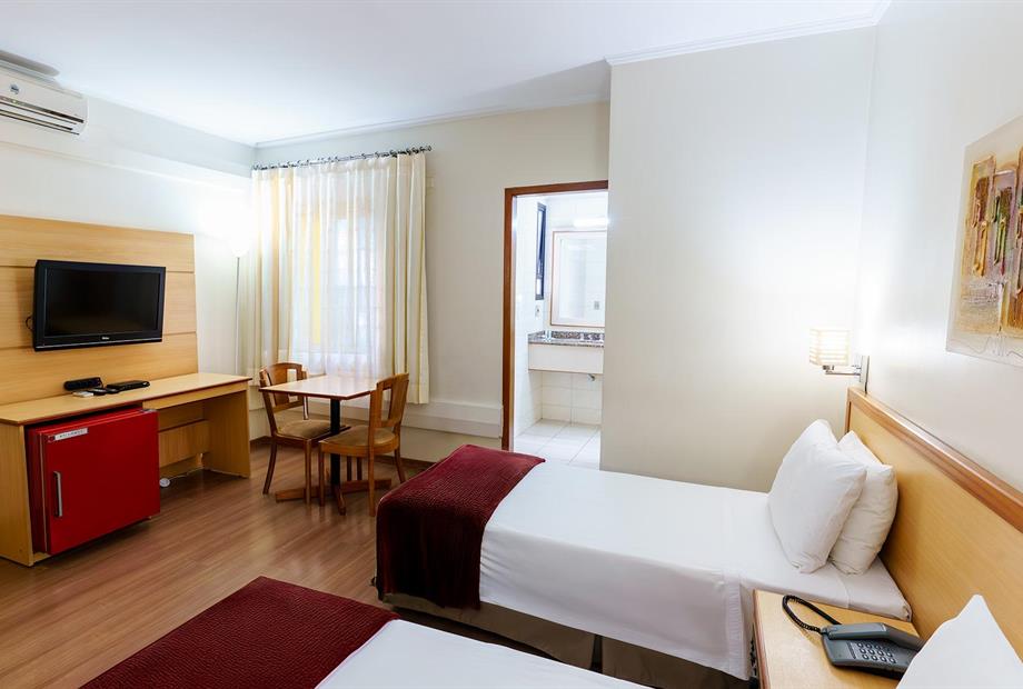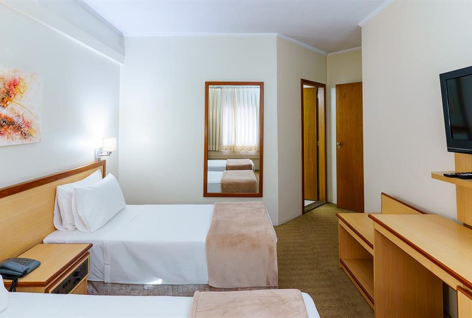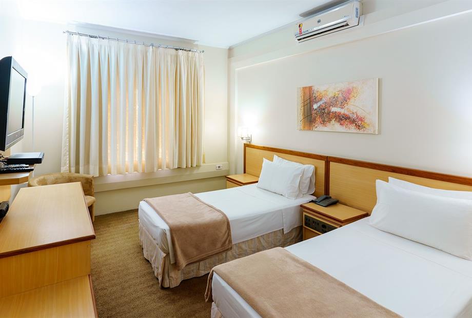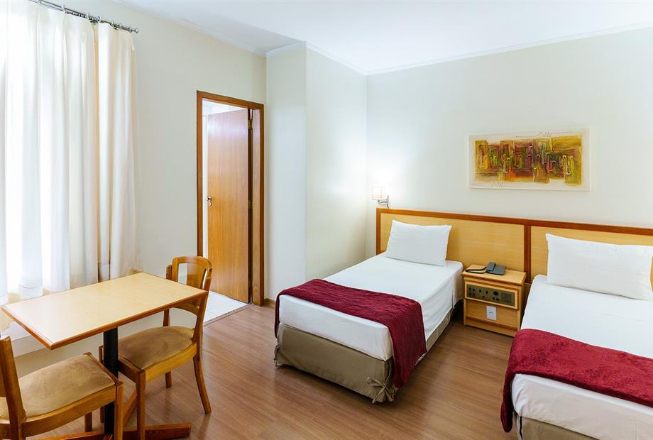 Apartamento com 22,80m², com 2 camas de solteiro, ar-condicionado, TV LCD 32”, frigobar, TV a cabo, telefone,...