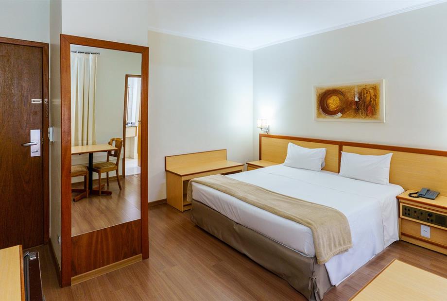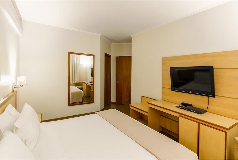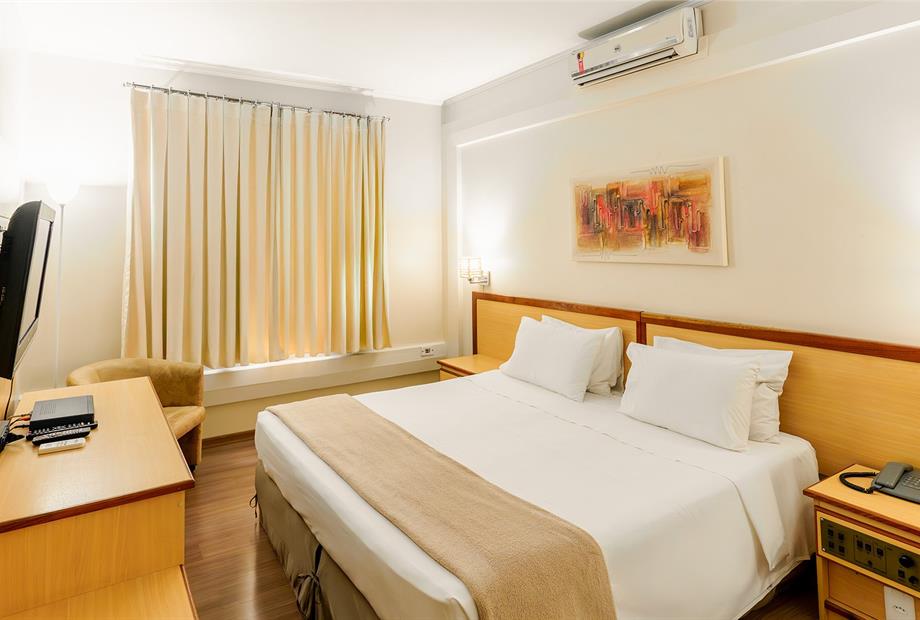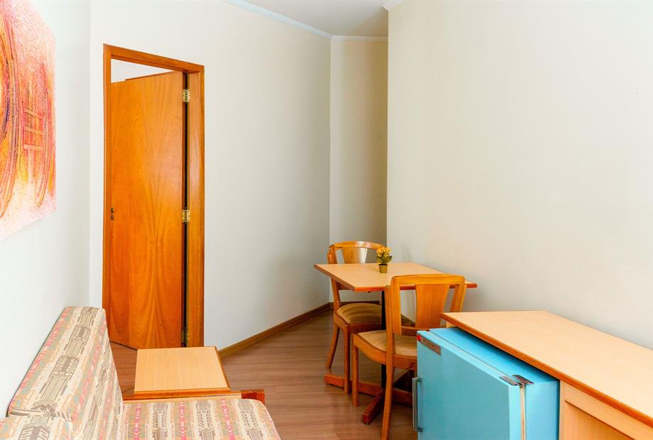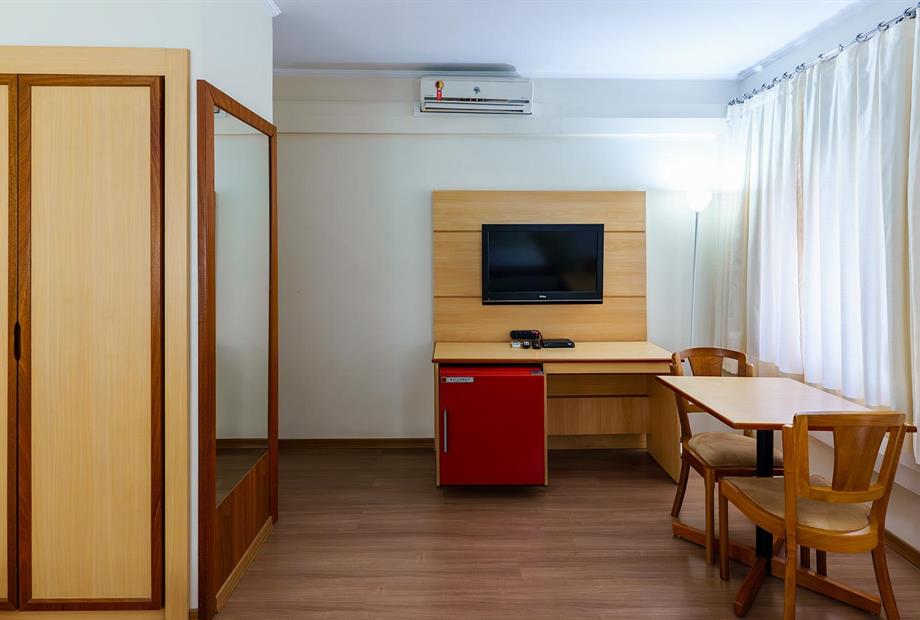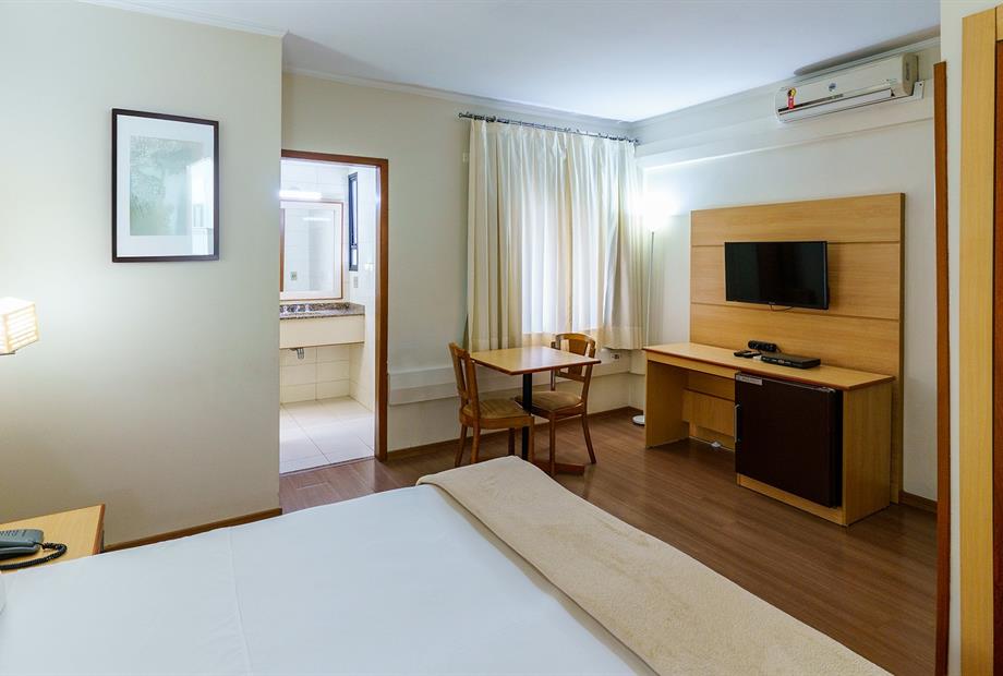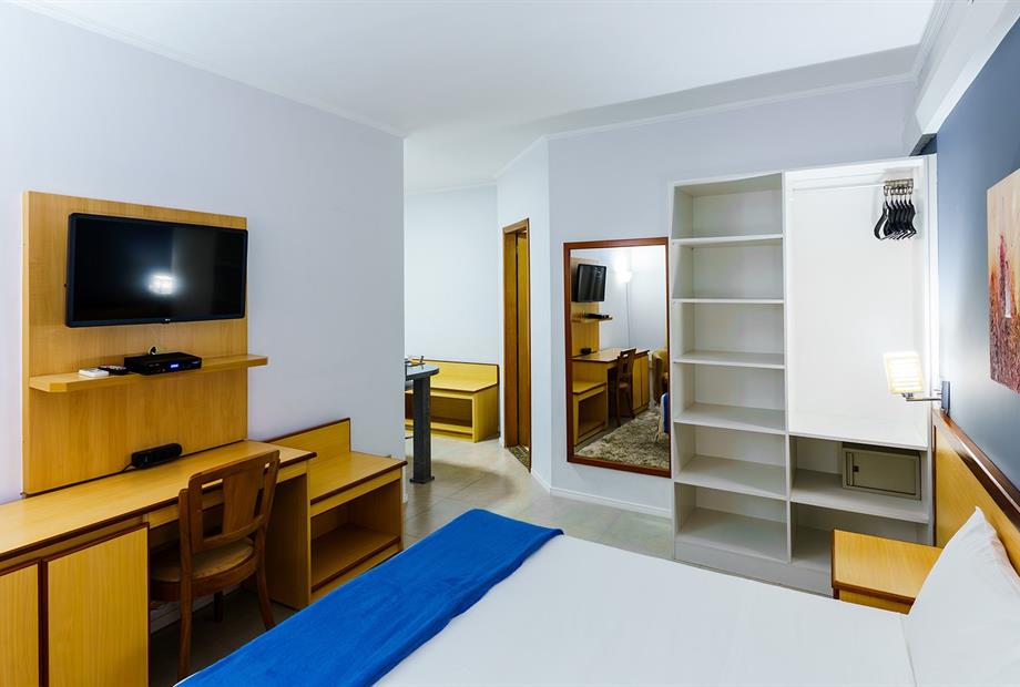 Apartamento com 22,80m², com 1 cama de casal, ar-condicionado, TV LCD 32”, frigobar, TV a cabo, telefone, WI-F...