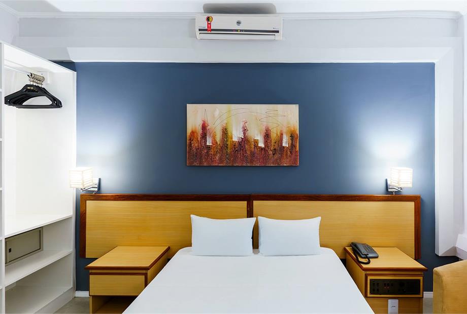 Apartamento com 22,80m², com 2 camas de solteiro, ar-condicionado, TV LCD 32”, frigobar, TV a cabo, telefone, WI-FI, fechadura com cartão ma... (ver mais)