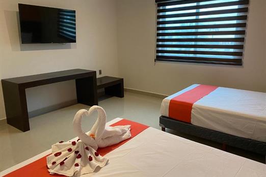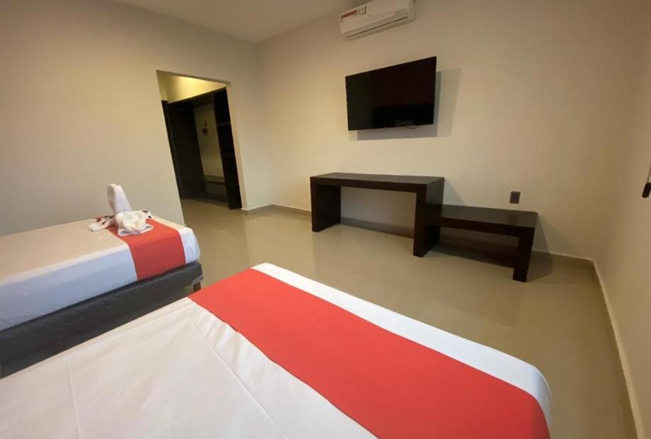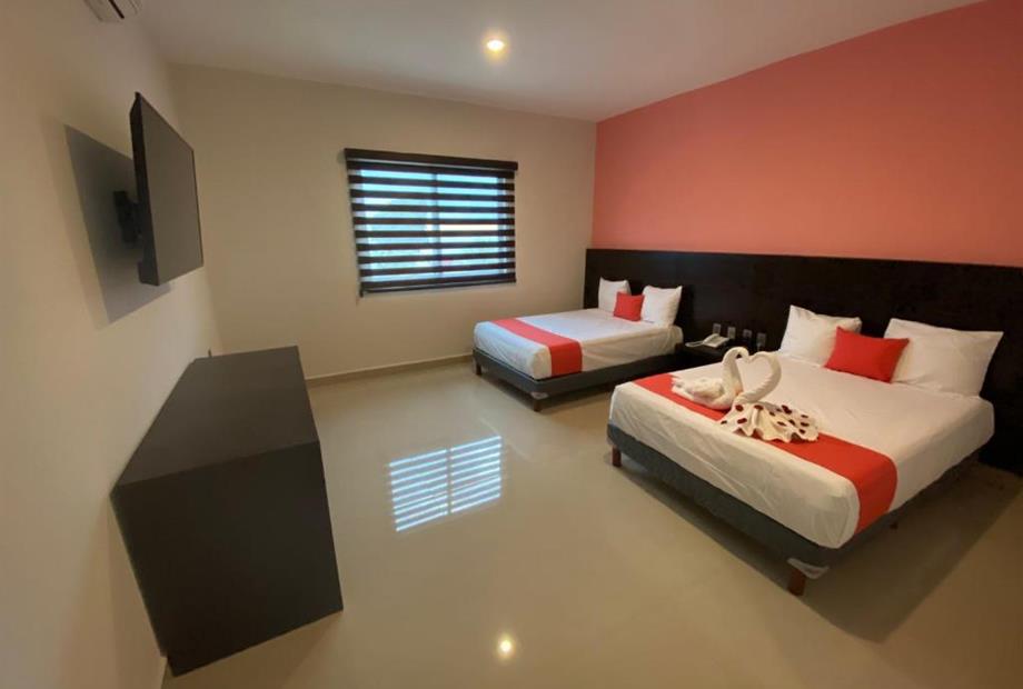Habitación con cama dos camas dobles . Cuenta con aire acondicionado, WIFI gratis, Tv pantalla plana con canales por cable, secador de cabel...