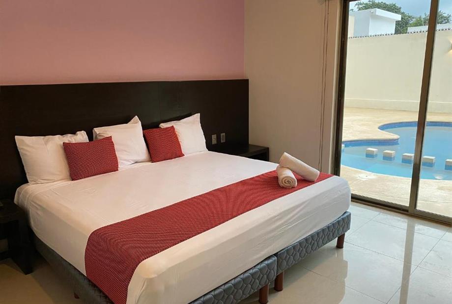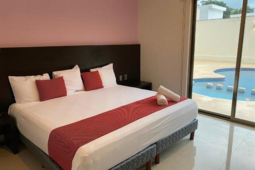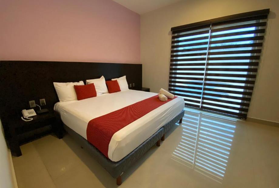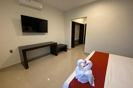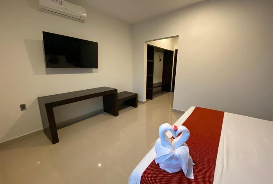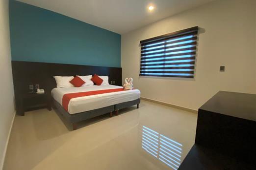 Habitación con cama king size. Cuenta con aire acondicionado, WIFI gratis, cocineta con microondas y nevera, Tv pantalla plana con canales p...