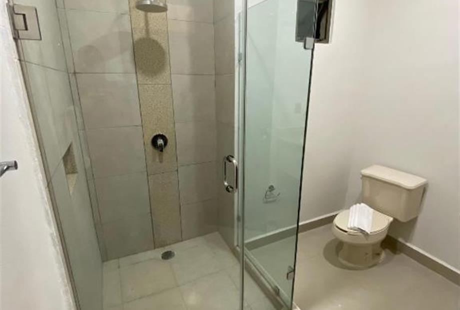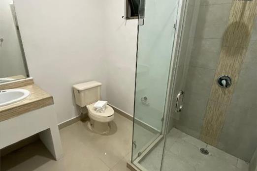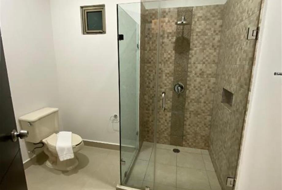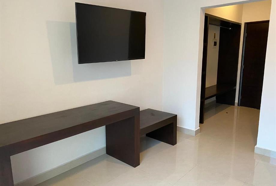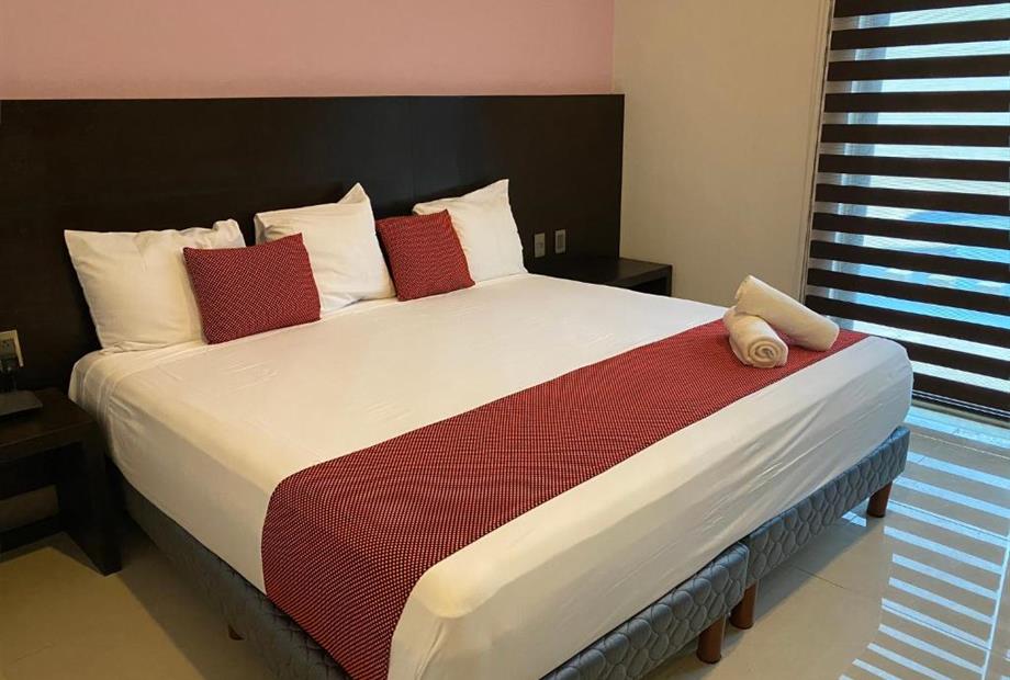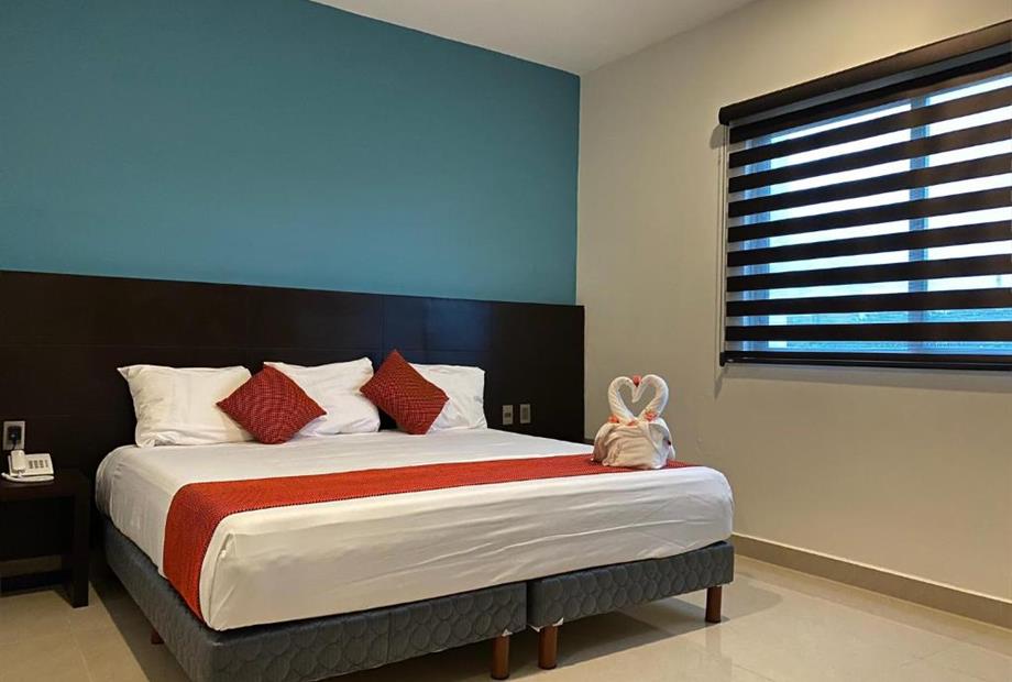 Habitación con cama king size. Cuenta con aire acondicionado, WIFI gratis, Tv pantalla plana con canales por cable, secador de cabello, baño...