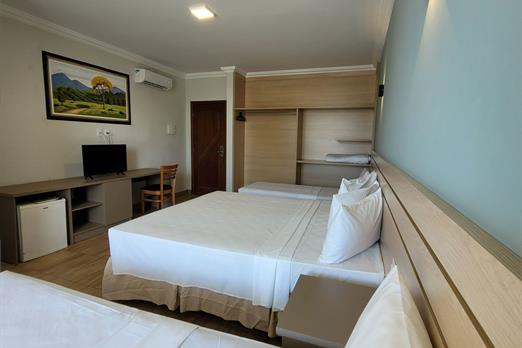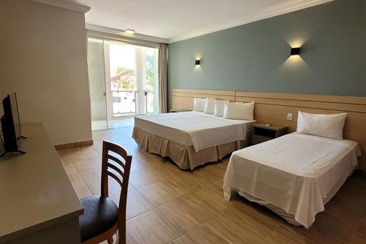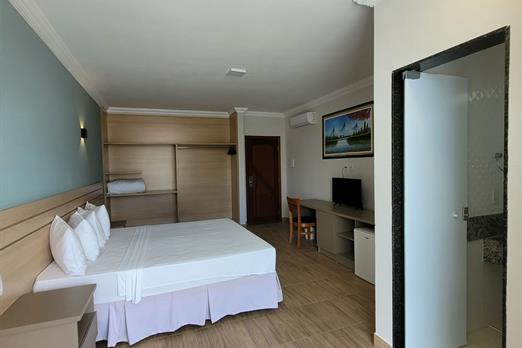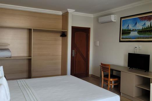 Confortáveis quartos localizado no 1° andar incluso: - Cama queen; - Ar condicionado: - Smart TV; - Cofre; - Banheiro; - Varanda.