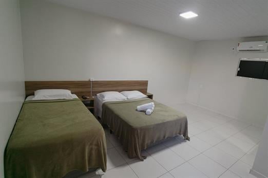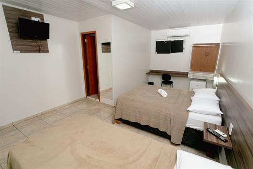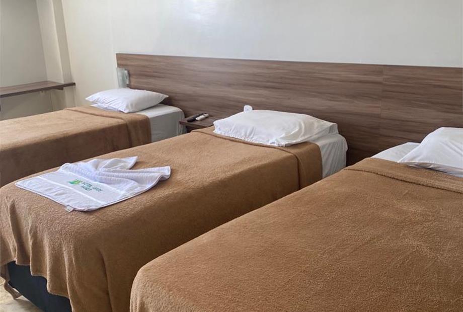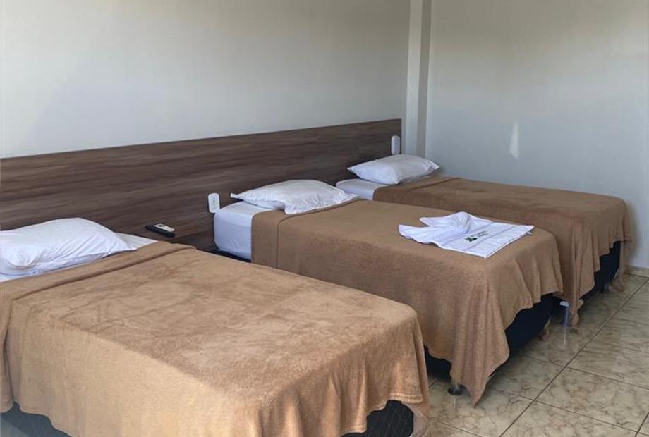 Os nossos quartos TRIPLO SOLTEIRO contam com 3 camas de solteiro cada, onde acomoda até 3 hóspedes. Nele conta com tv de tela plana, frigoba...