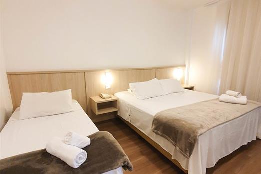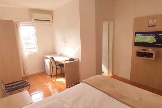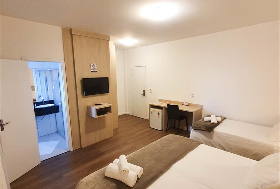 Este apartamento Triplo tem: - TV via satélite. - Ar-condicionado. - Piso frio/de mármore. - Geladeira Frigobar. - Escrivaninha de trabalho....