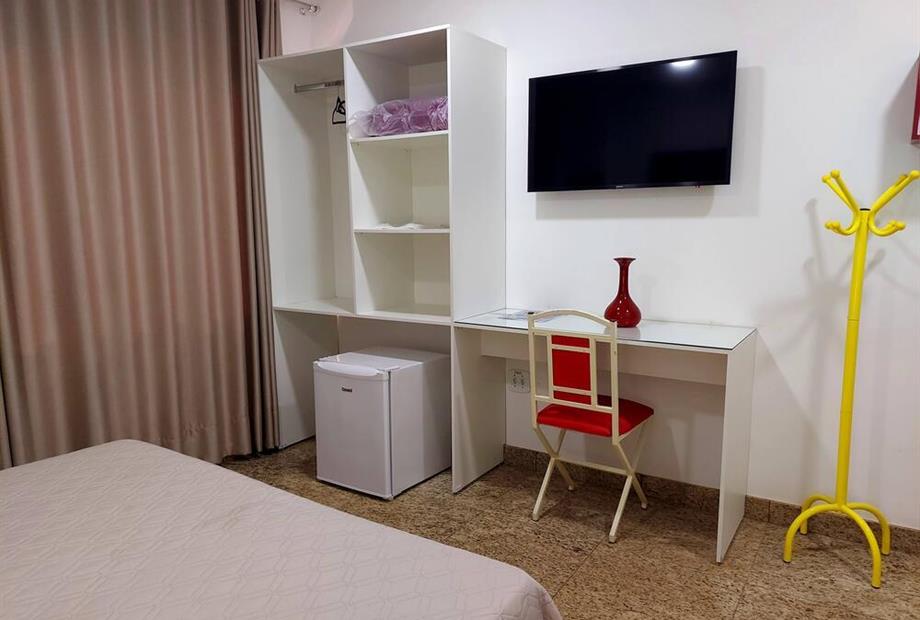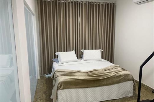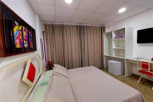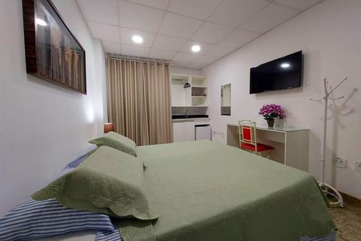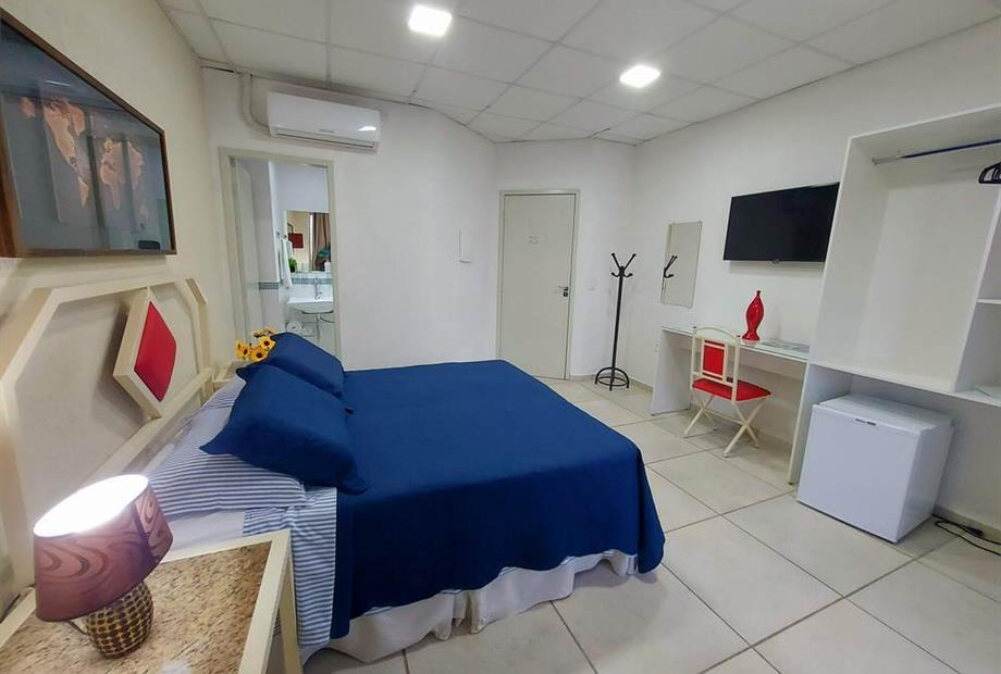 Suíte completa, que possui ar-condicionado, TV Smart com canais fechados, frigobar, Wi-Fi e móveis planejados. Configuração com uma cama q...