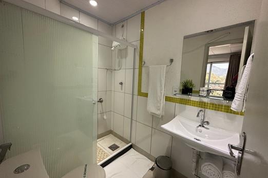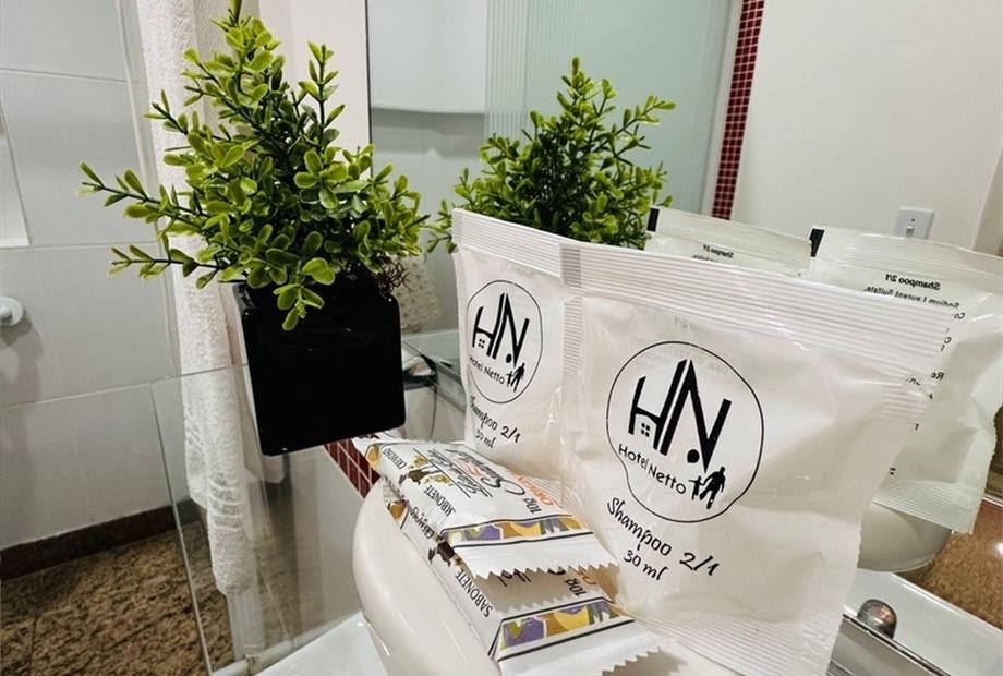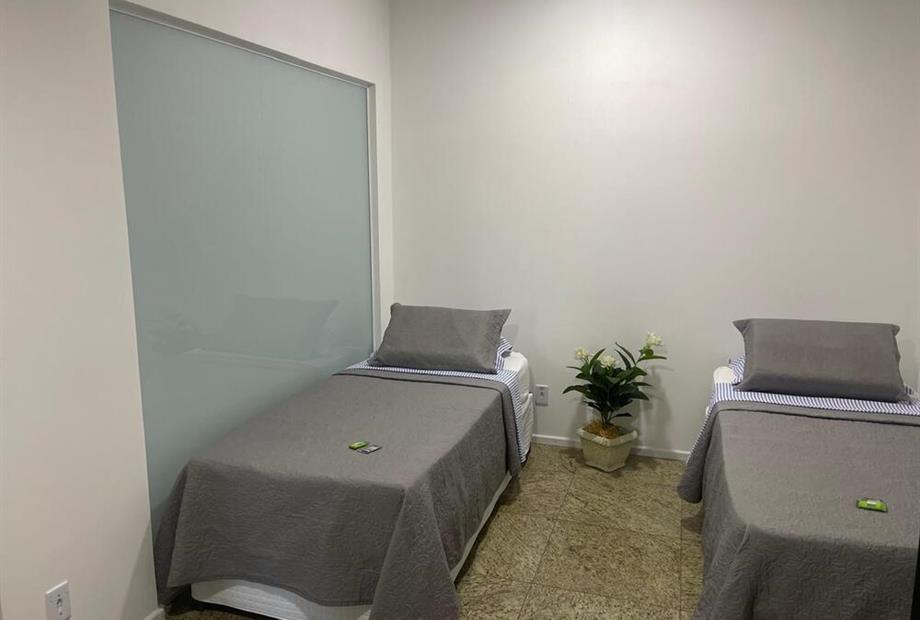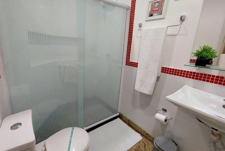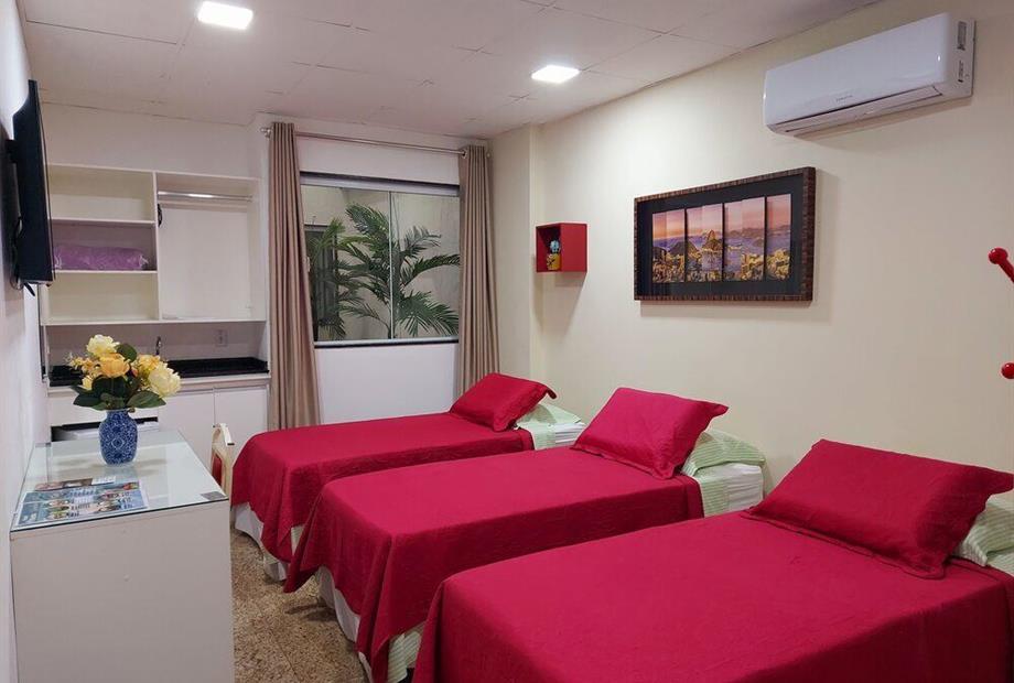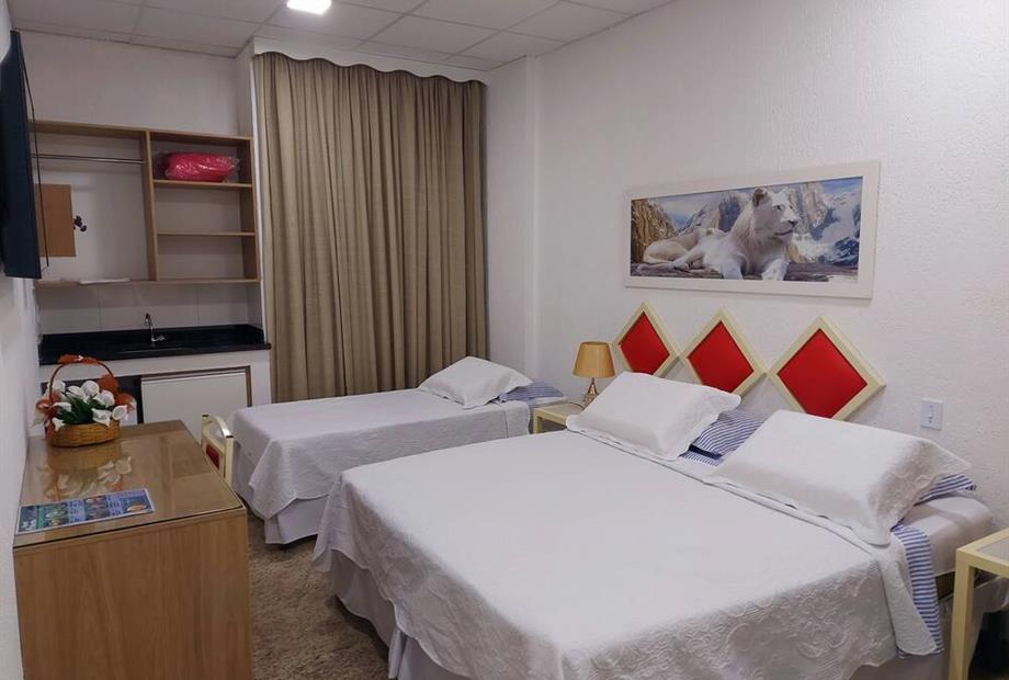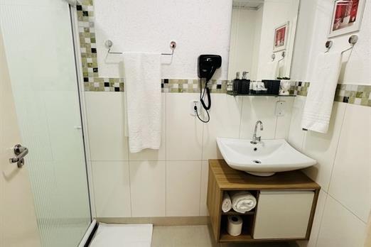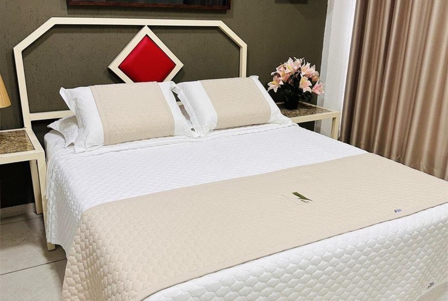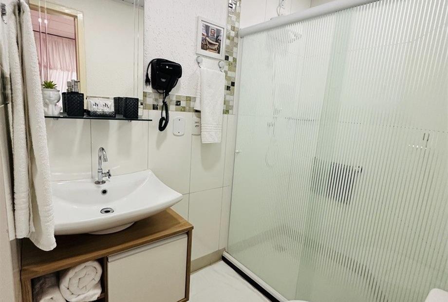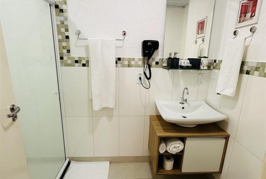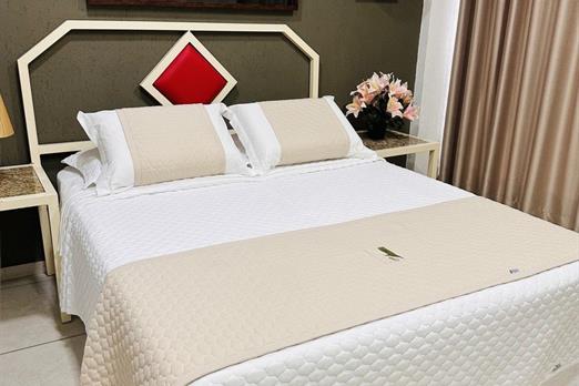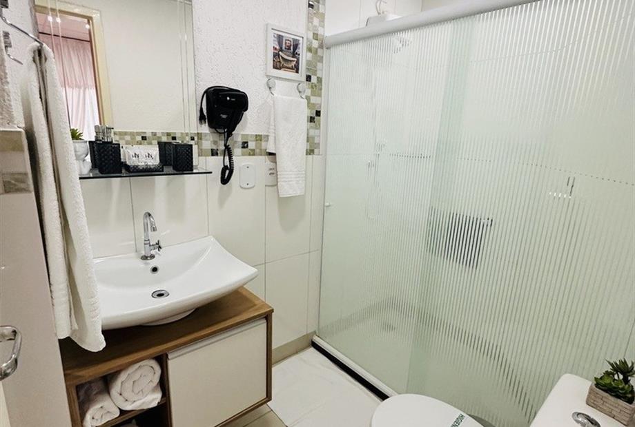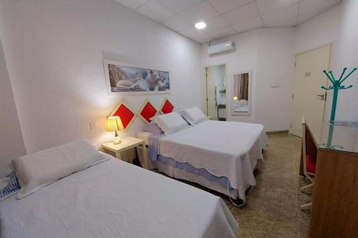 Suíte completa, que possui ar-condicionado, TV Smart com canais fechados, frigobar, e Wi-Fi. Configuração com uma cama queen size ou duas c...