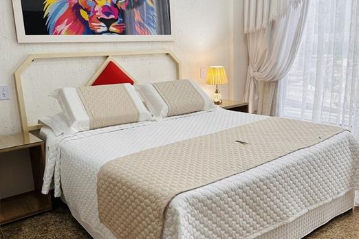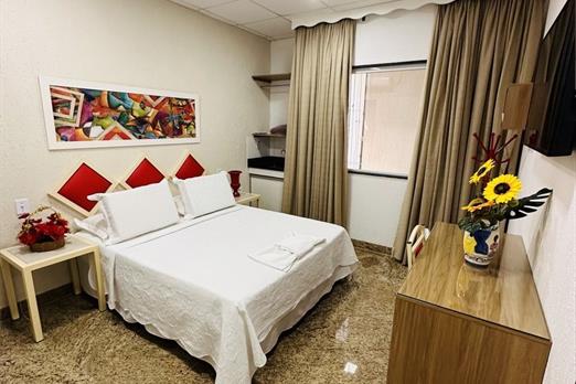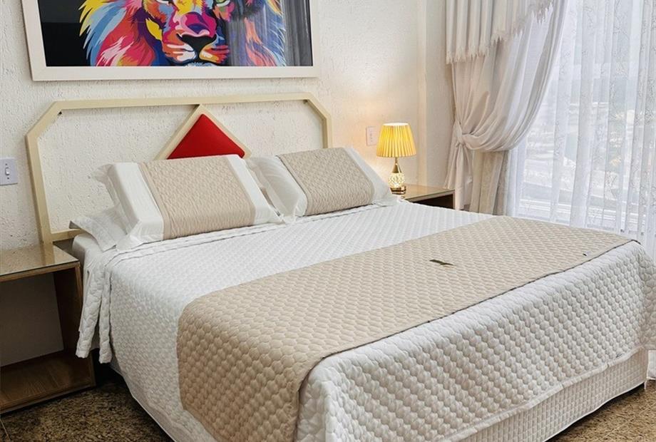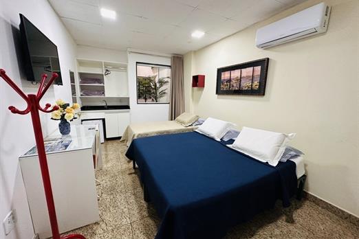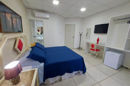 Suíte completa, que possui ar-condicionado, TV Smart com canais fechados, frigobar, Wi-Fi e móveis planejados. Configuração com uma cama...