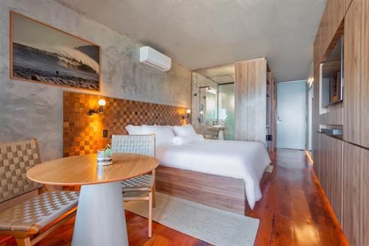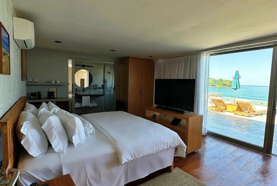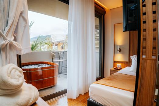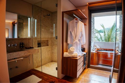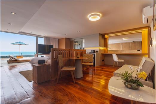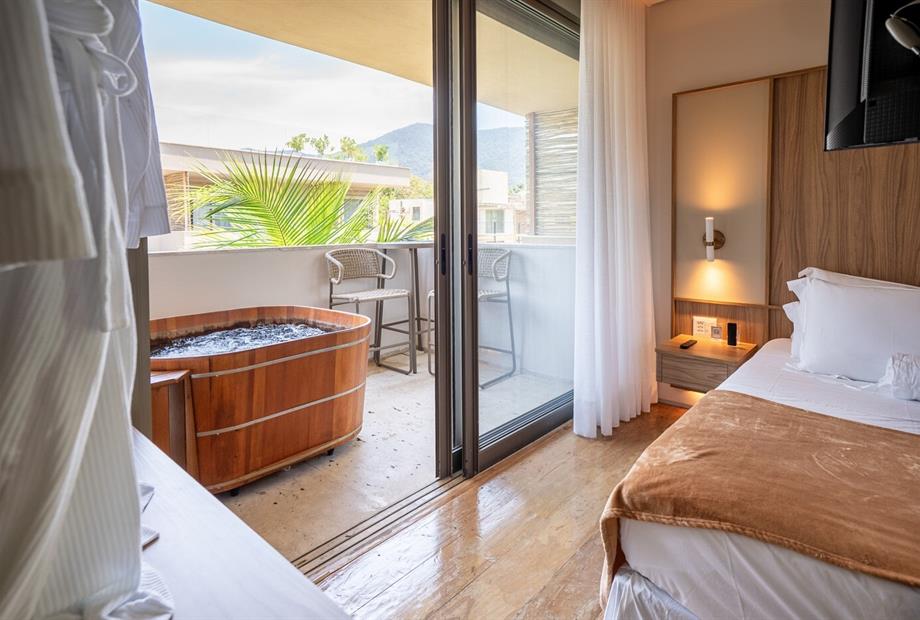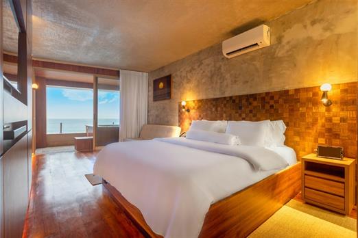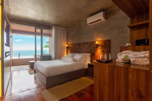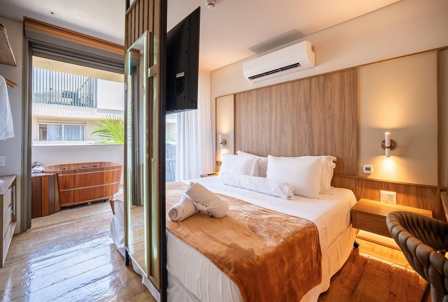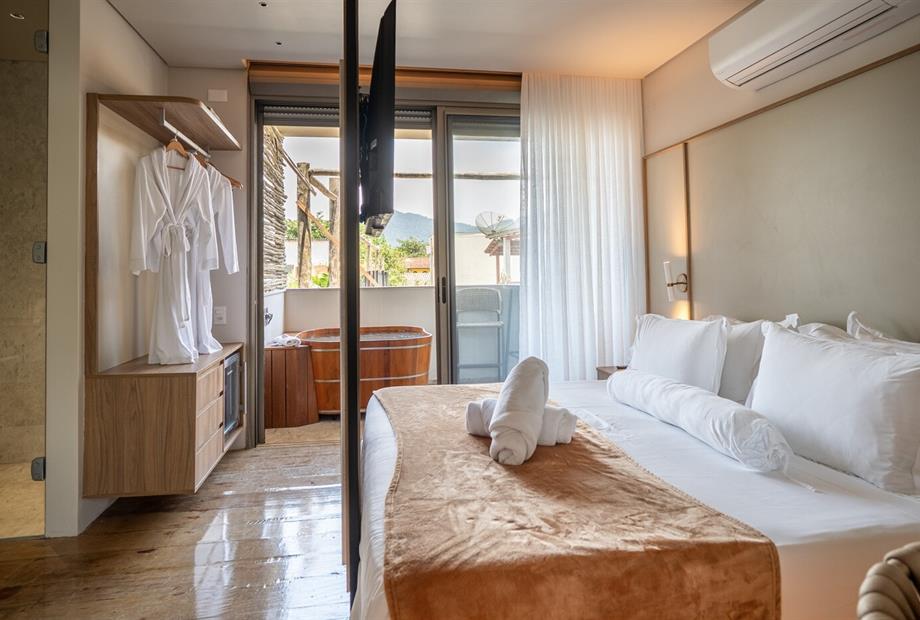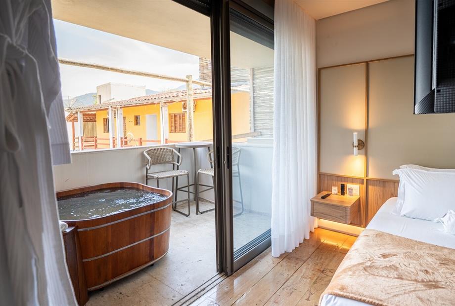 A categoria Luxo, localizada no piso superior, dispõe de uma aconchegante varanda privativa com uma deliciosa jacuzzi frente ao mar em até 3...