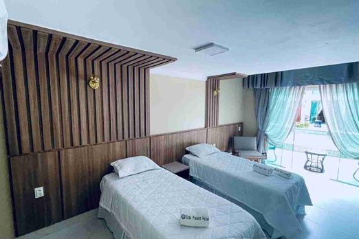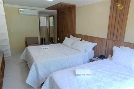 02 camas queen size e 01 cama de solteiro Com capacidade para acomodar até 05 adultos e 01 criança menor de 06 anos compartilhando a cama co...