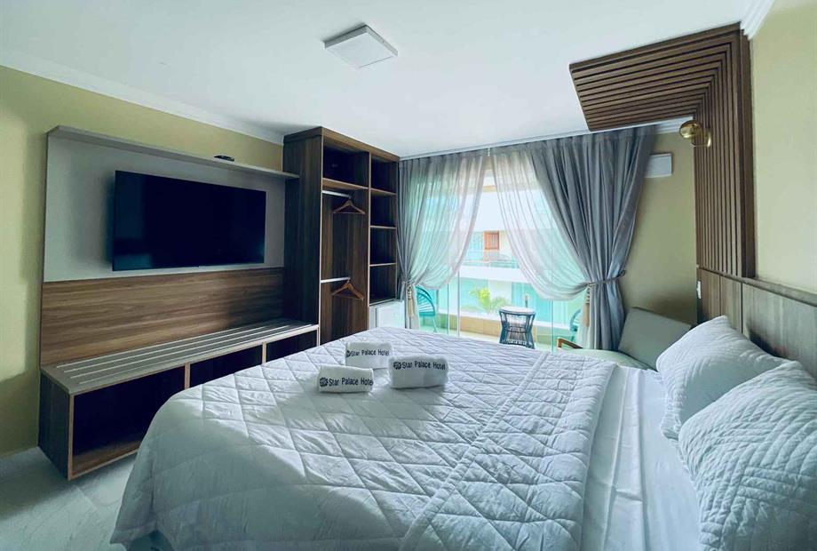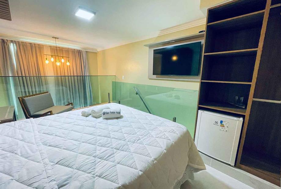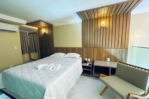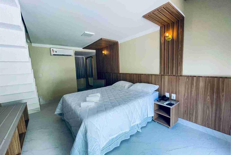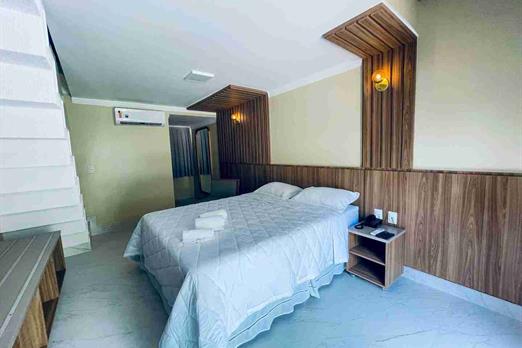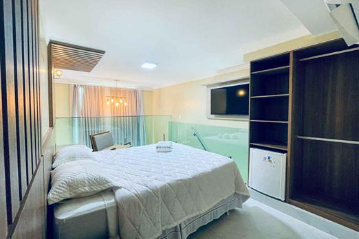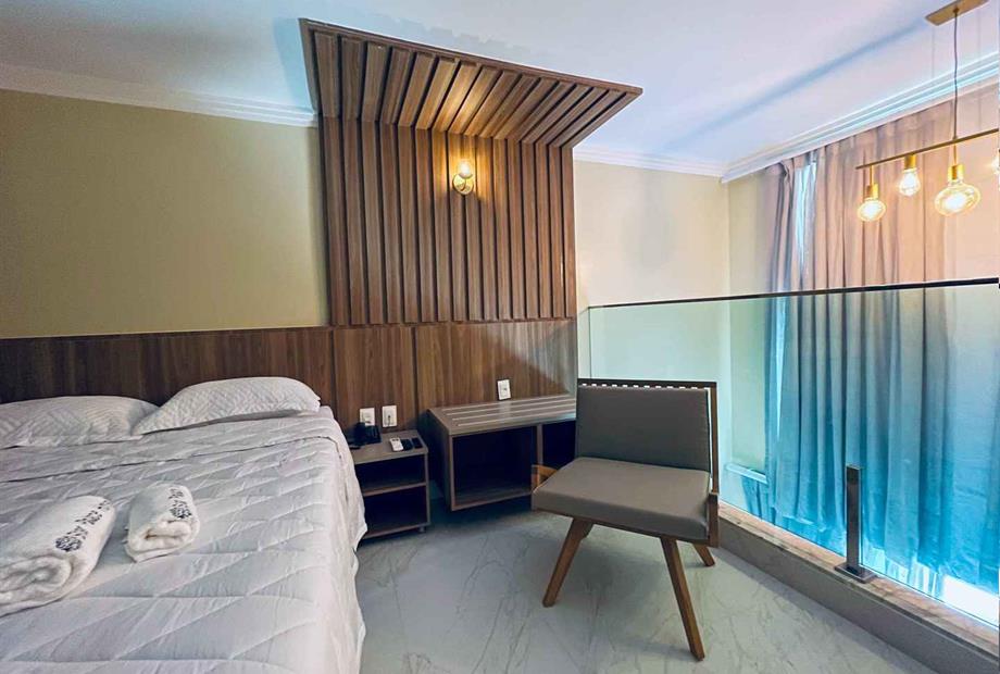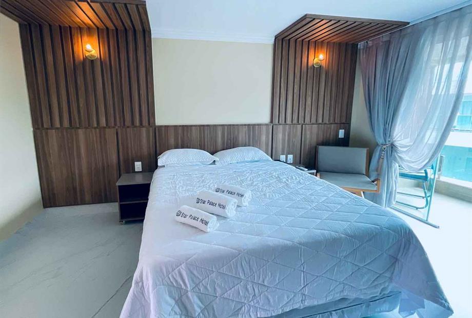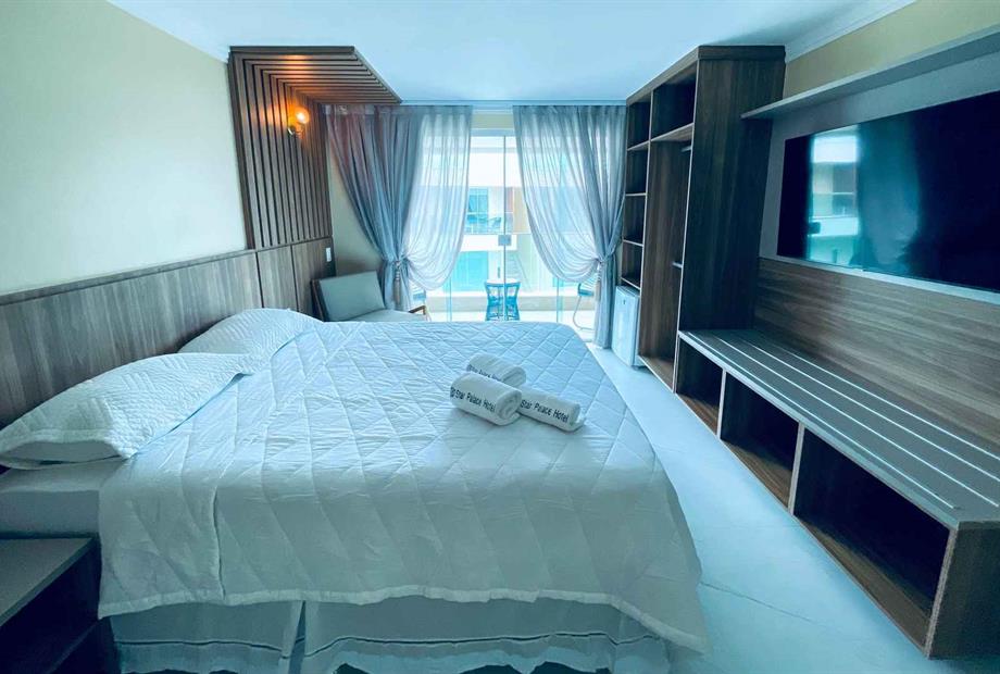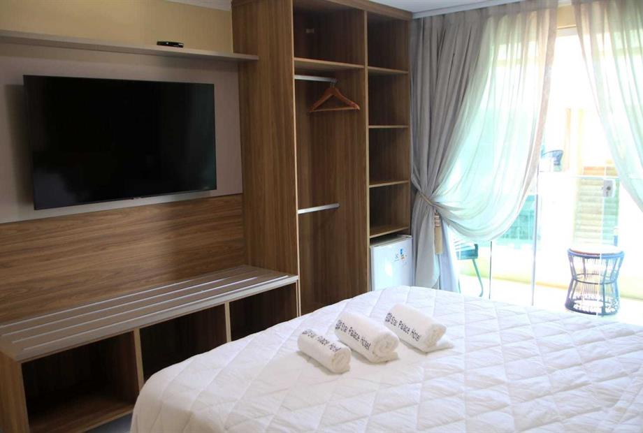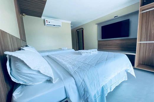 01 cama queen size Com capacidade para acomodar até 02 adultos e 01 criança menor de 06 anos compartilhando a cama com os pais. Esta catego...