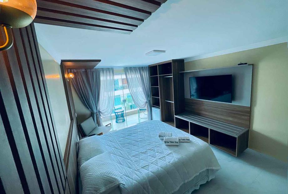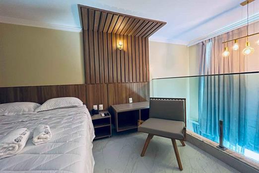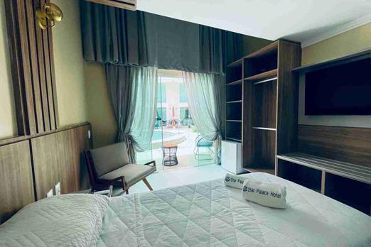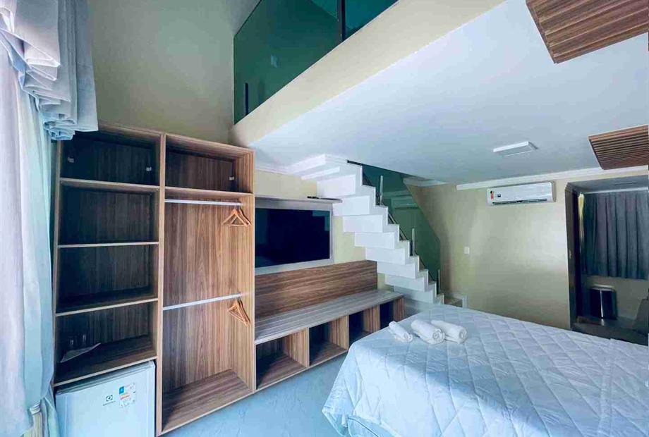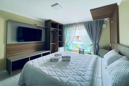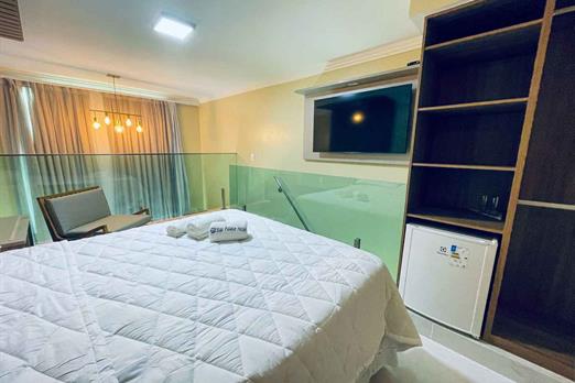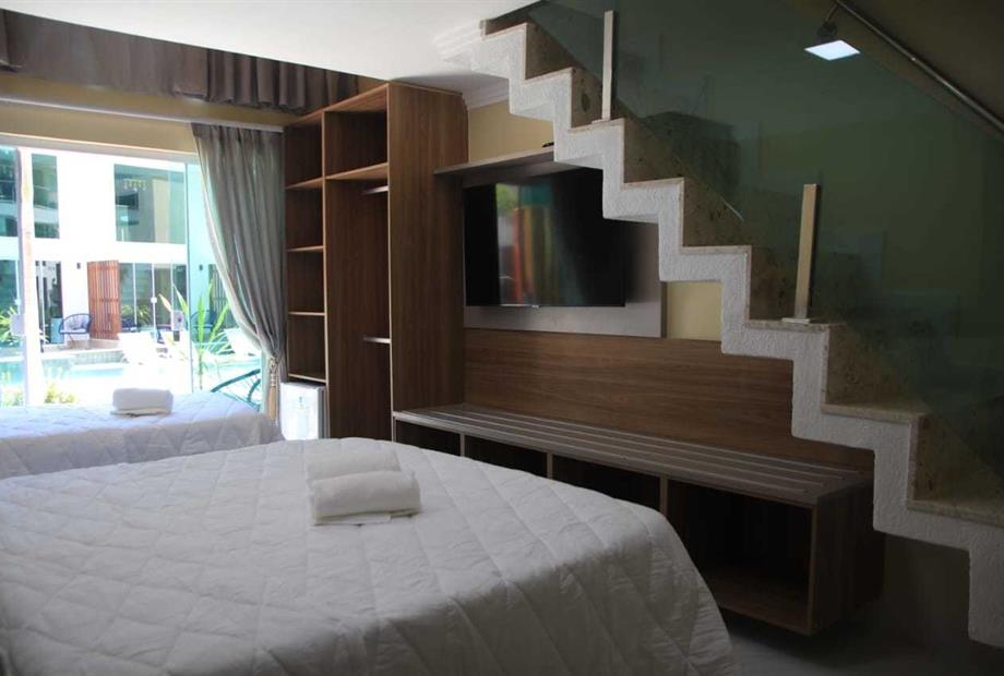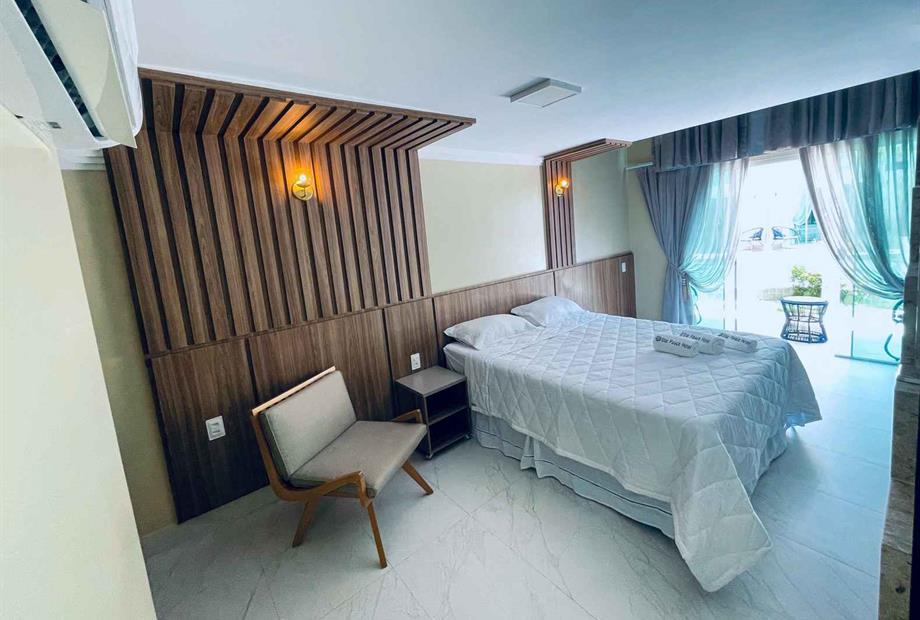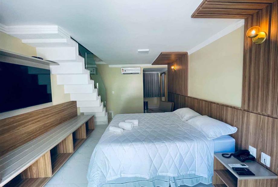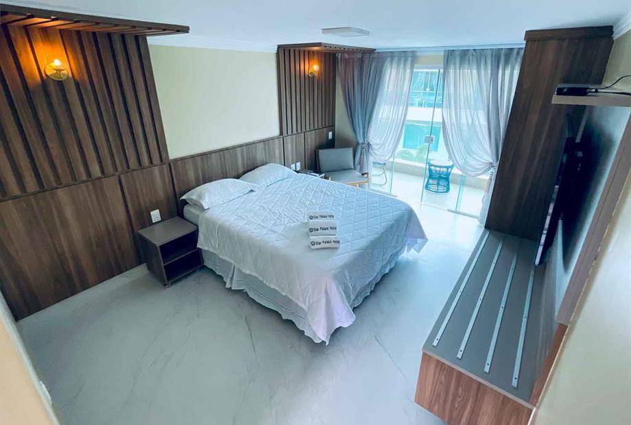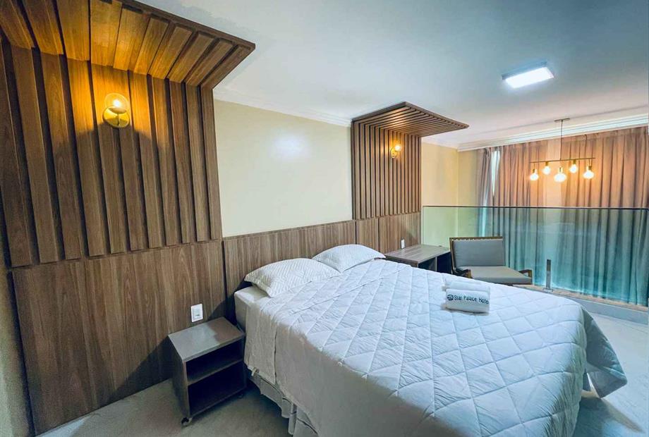 01 cama queen size Com capacidade para acomodar até 02 adultos e 01 criança menor de 06 anos compartilhando a cama com os pais. Esta catego...
