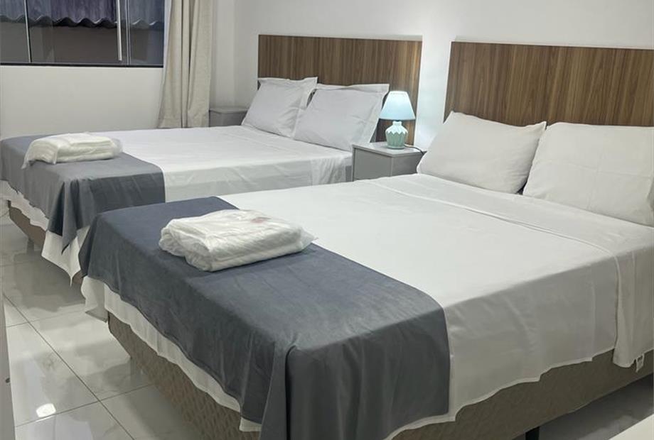 esse quarto sextuplo dispoe de ár condicionado sprint, piso porcelanato, wafi gratuito, tv fina, Geladeira, Microondas, Sanduicheira, secado...