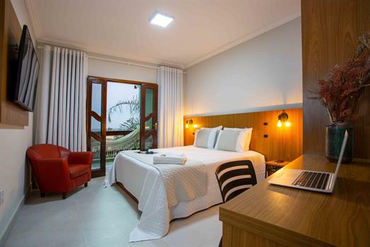 CAMA CASAL KING / TV 50"/ AR COND. SPLIT / FRIGOBAR / VARANDA INDIVIDUAL C/ REDE / VISTA PARA MAR E JARDIM