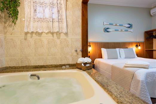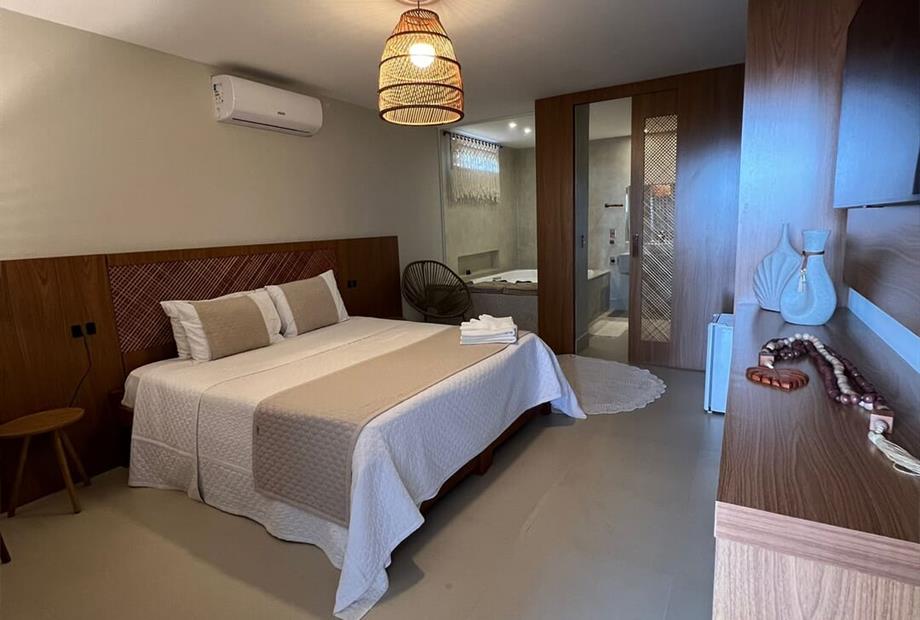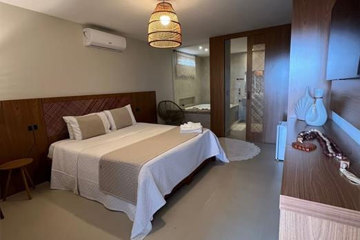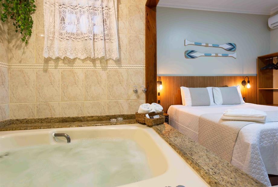 Cama de casal super king / tv smart 50" / ar condicionado split / frigobar / hidromassagem.