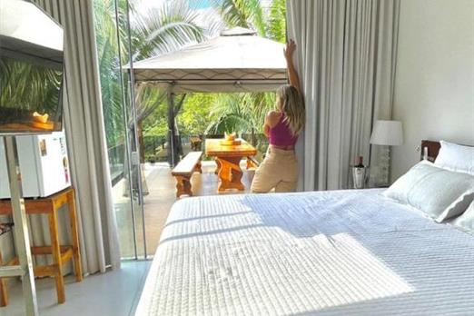 A Suíte com Hidro é climatizada oferece um quarto elegante e um banheiro completo com banheira com hidromassagem e chuveiro elétrico. Está e...